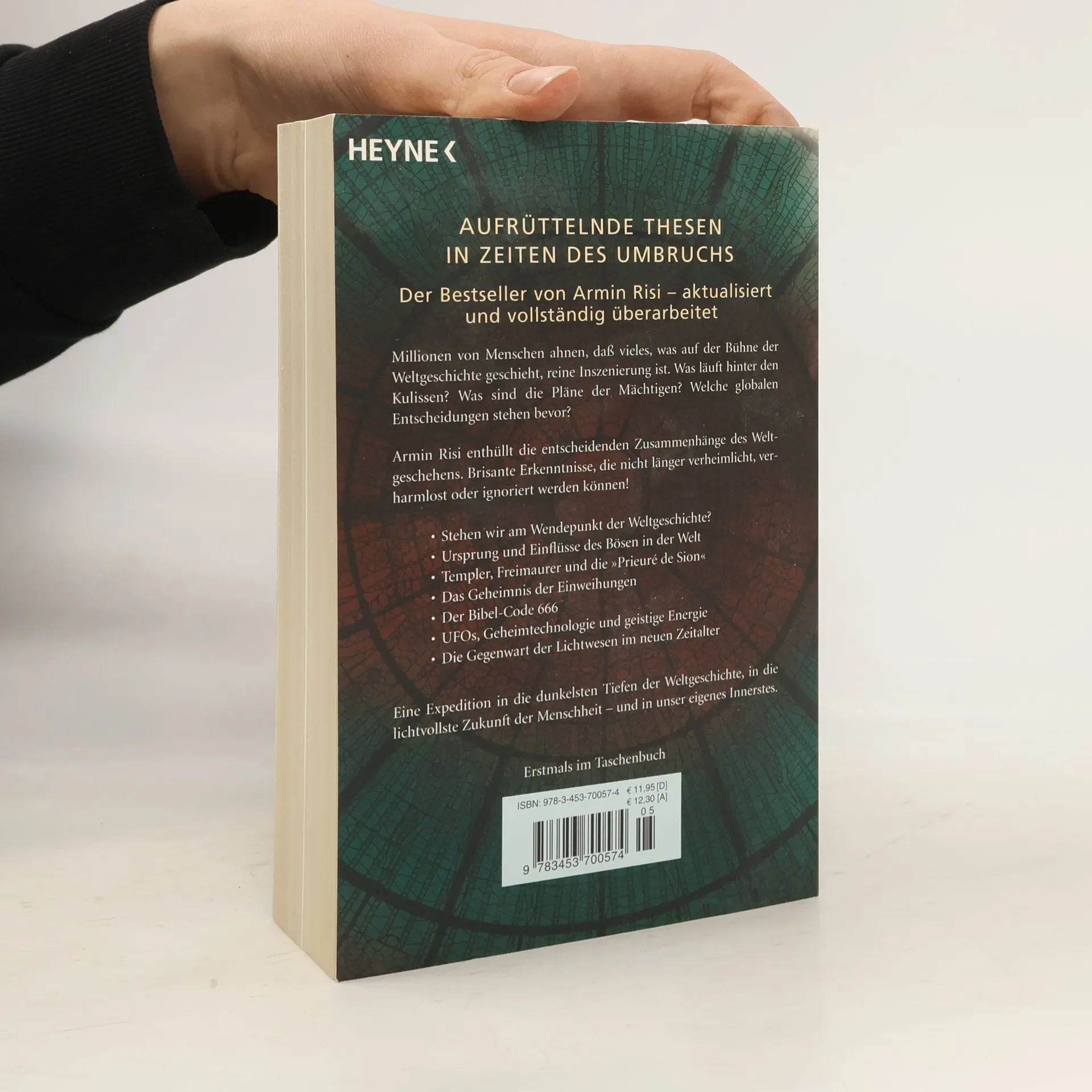 Aufrüttelnde Thesen in Zeiten des Umbruchs Eine Expedition in die dunkelsten Tiefen der Weltgeschichte, in die lichtvollste Zukunft des Erdplaneten und in unser eigenes Innerstes: Armin Risi enthüllt die entscheidenden geschichtlichen, politischen, religiösen und esoterischen Zusammenhänge des Weltgeschehens – brisante Erkenntnisse, die nicht länger verheimlicht, verharmlost oder ignoriert werden können: - Stehen wir am Wendepunkt der Weltgeschichte? - Ursprung und Einflüsse des Bösen in der Welt - Templer, Freimaurer und die „Prieuré de Sion“ - Das Geheimnis der Einweihungen - Der Bibel-Code 666 - UFOs, Geheimtechnologie und geistige Energie - Die Gegenwart der Lichtwesenim neuen Zeitalter
