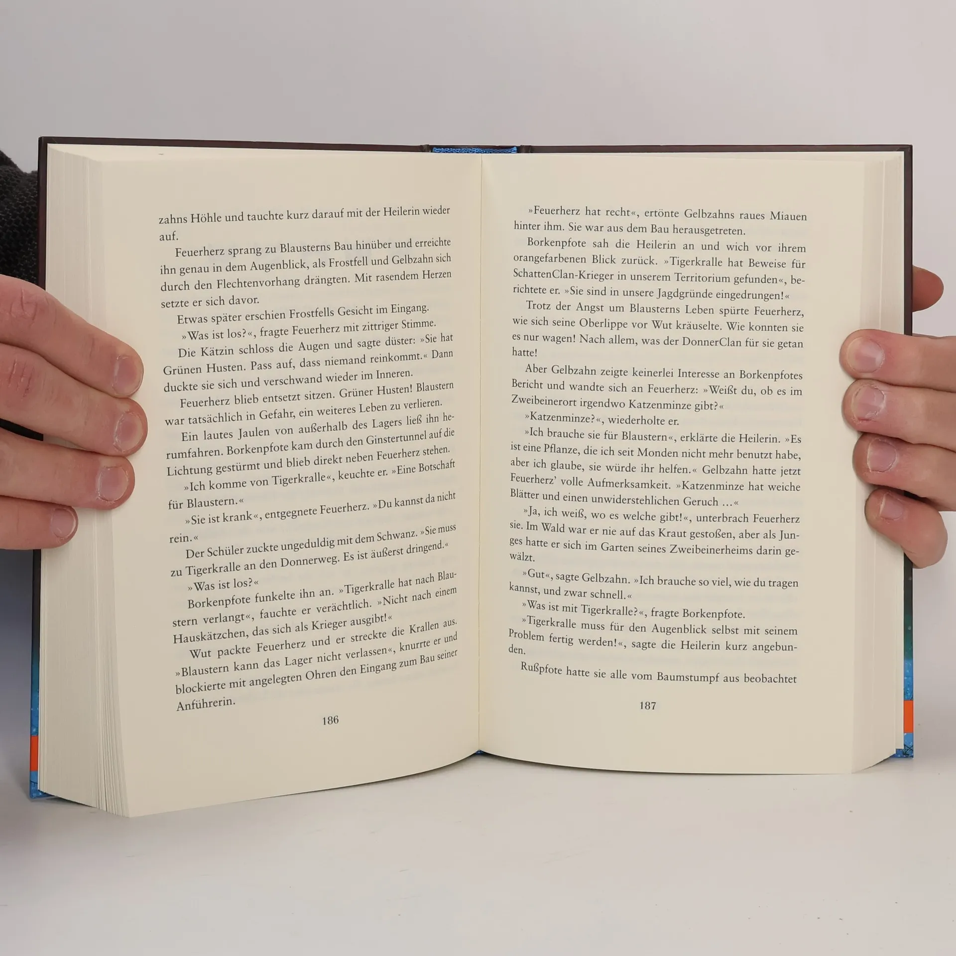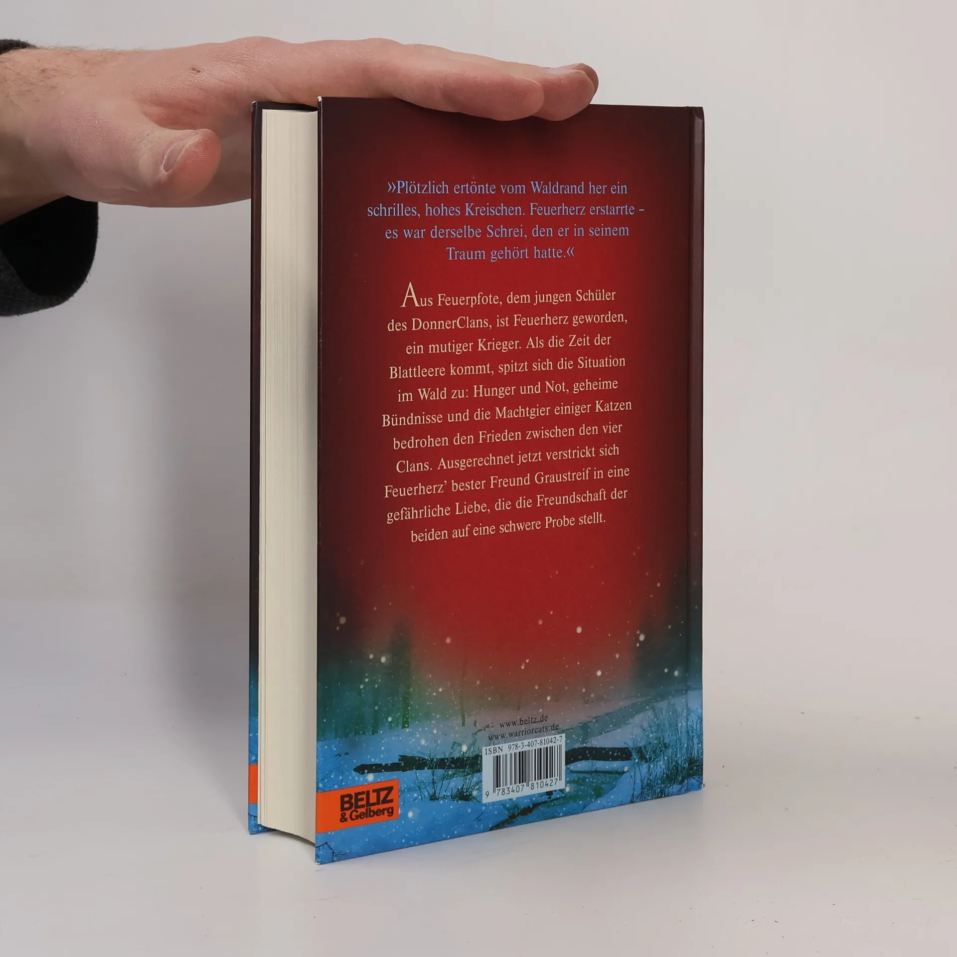 „Plötzlich ertönte vom Waldrand her ein schrilles, hohes Kreischen. Das Blut in Feuerherz’ Adern erstarrte – es war derselbe Schrei, den er in seinem Traum gehört hatte.“ Feuerherz, das ehemalige ‚Hauskätzchen’, ist ein mutiger Krieger des DonnerClans geworden. Als der Winter kommt, spitzt sich die Situation im Wald zu: Nachdem der WindClan von Katzen des SchattenClans vertrieben wurde, ist das Gleichgewicht der Clans gestört. Hunger und Not, geheime Bündnisse und die Machtgier einzelner Katzen bedrohen den Frieden im Wald. Ausgerechnet jetzt verstrickt sich Feuerherz’ bester Freund Graustreif in eine gefährliche Liebe. Als die beiden Freunde aufbrechen, um den WindClan zurückzuholen, kommt es zu einem schrecklichen Unfall …