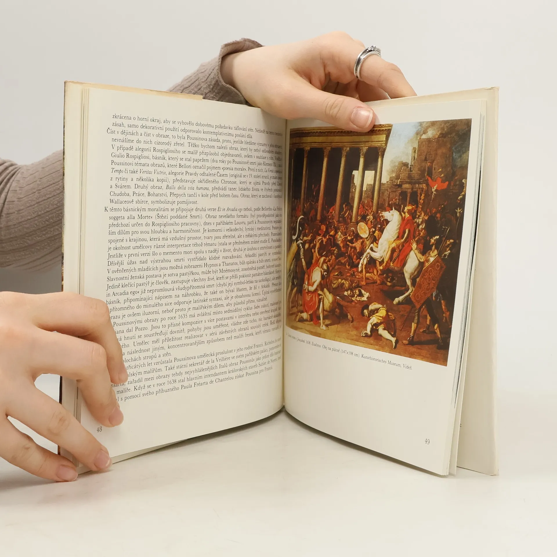 Monografie. Nicolas Poussin (1594 - 1665) patří svým dílem k vrcholům světového malířství. Rodem Francouz, rozhodl se většinu života strávit v Římě a zde v prostředí antické kultury maloval obrazy arkadicky jasné, harmonické a hluboce lidské.