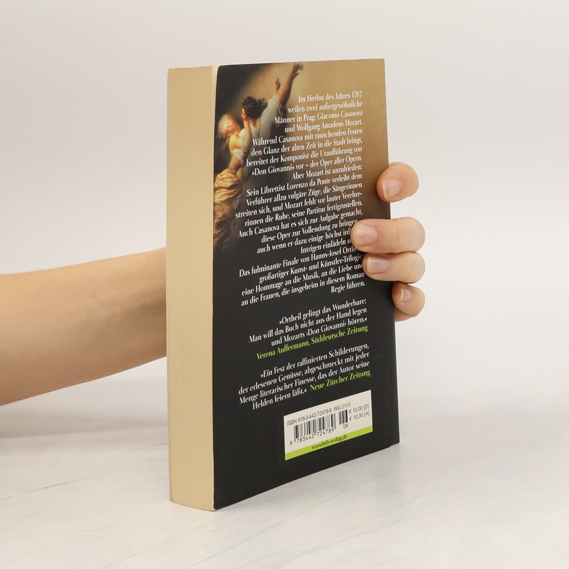 An einem Herbstabend des Jahres 1787 kommt Giacomo Casanova auf Einladung des Grafen Pachta nach Prag. Auch Mozart befindet sich in der Stadt an der Moldau. Er bereitet die Uraufführung der Oper aller Opern mit ihrer vollendet schwebenden Musik vor – „Don Giovanni“. Aber die Arbeit stockt. Der Librettist Lorenzo da Ponte gibt dem Verführer vulgäre, bestenfalls grobe Züge, die Sängerinnen neiden einander jede Arie, und Mozart fehlt die Ruhe, seine Partitur zu beenden; überall wird er von Verehrerinnen verfolgt. Casanova aber bringt den Glanz aus einer großen alten Zeit in die Stadt, er versteht Feste zu feiern, er weiß, über welche Rafinesse und Wortgewandtheit ein wahrer Verführer verfügen müsste. Und er hat es sich ebenfalls zur Aufgabe gemacht, diese Oper zur Vollendung zu bringen – auch wenn er dazu einige höchst irdische Intrigen einfädeln muss ... Nach „Faustinas Küsse“ und „Im Licht der Lagune“ hat Ortheil nun das große Finale seiner erotischen Kunst- und Künstler-Trilogie geschrieben. In diesem Roman geht es um Musik und das, was die Musik allein zu gestalten vermag: um Liebe. In einem Wirbel von Geschichten schildert Ortheil, wie eine der bedeutendsten europäischen Opern entstanden ist. Überwältigend zart und klug wie Mozarts Musik entspinnt sich dieses Buch, und obwohl drei Männer das große Wort führen, halten andere darin die Hauptrolle besetzt und führen insgeheim Regie: die Frauen.