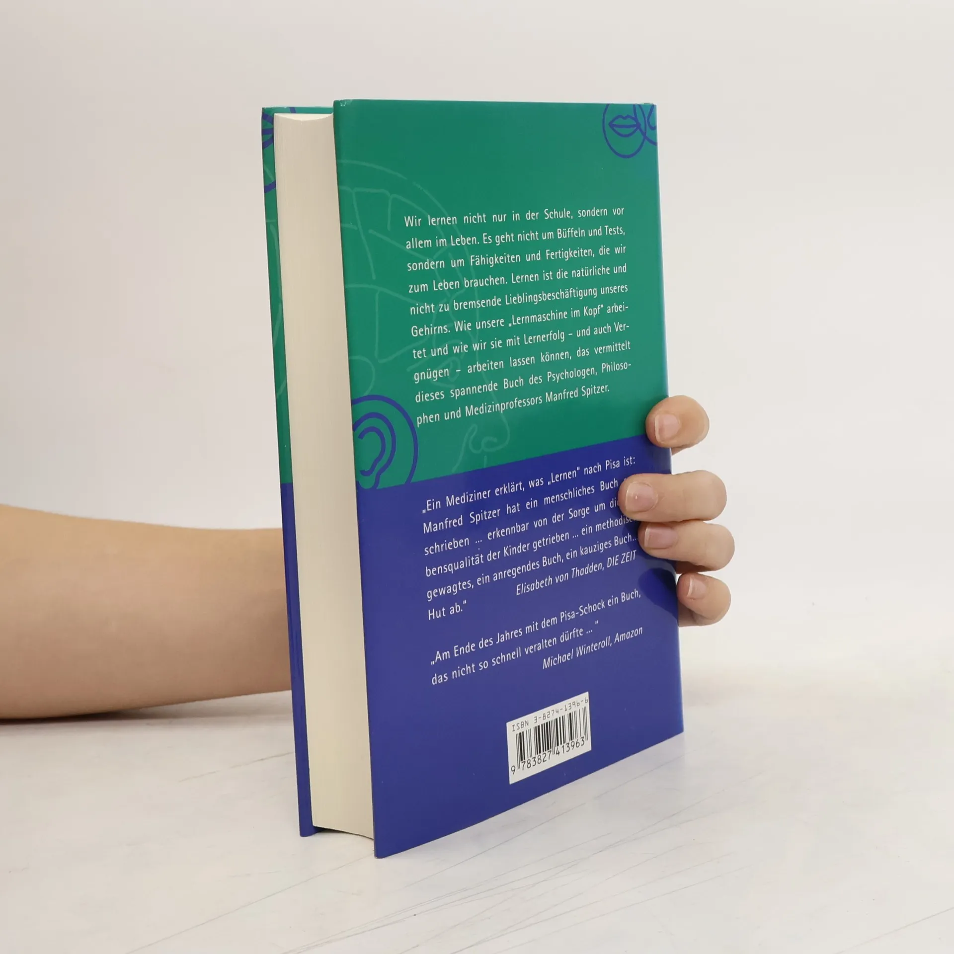 (Autor) Manfred Spitzer (Titel) Lernen (Untertiel) Gehirnforschung und die Schule des Lebens (copy) Wir lernen nicht nur in der Schule, sondern vor allem im Leben. Es geht nicht um Büffeln und Tests, sondern um Fähigkeiten und Fertigkeiten, die wir zum Leben brauchen. Lernen ist die natürliche und nicht zu bremsende Lieblingsbeschäftigung unseres Gehirns. Wie unsere „Lernmaschine im Kopf“ arbeitet und wie wir sie mit Lernerfolg - und auch Vergnügen - arbeiten lassen können, das vermittelt dieses spannende Buch. (Biblio) 2002. 500S., 93 Abb., geb. € 31,- / sFr 50,- ISBN 3-8274-1396-6 (Störer) Bereits über XXX verkaufte Ex.!