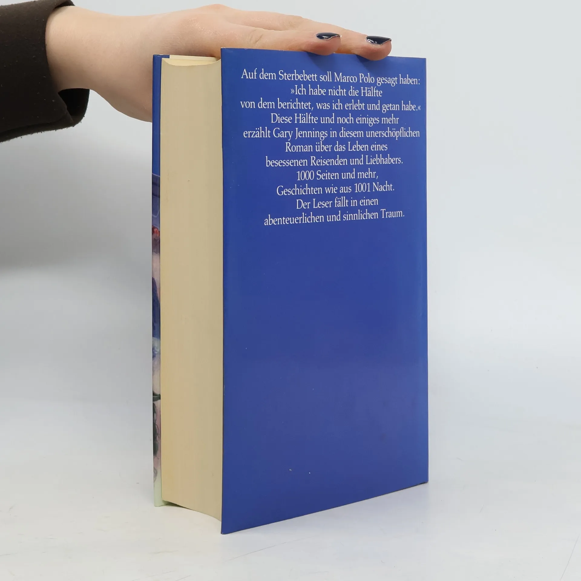 'Ich habe nicht einmal die Hälfte von dem erzählt, was ich erlebt habe', hat Marco Polo auf dem Sterbebett gesagt. Gary Jennings, Autor des Bestsellers 'Der Azteke', zeichnet in diesem packenden Roman den abenteuerlichen Weg Marco Polos nach: von den Palästen, Gassen und Kanälen im mittelalterlichen Venedig bis zum prächtigen Hof des Kubilai Khan. Er schildert Marco Polos Erlebnisse im Dunstkreis der parfümierten Sexualität der Levante bis zu den Gefahren einer Reise auf der Seidenstraße. Und er beschreibt die exotischen Menschen, denen der Reisende, Händler, Krieger; Liebhaber und Spion begegnet ist.