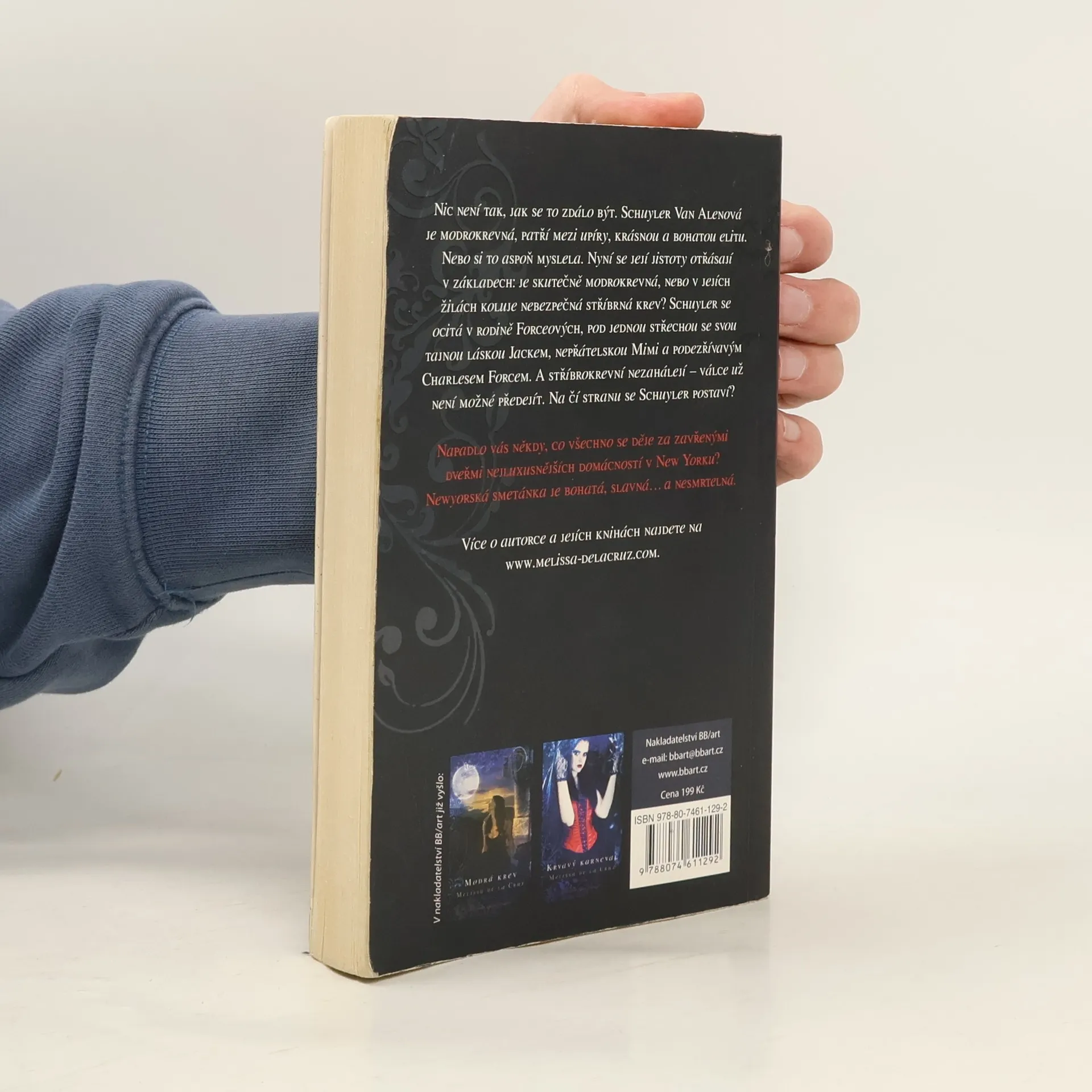 Mladí, krásní, bohatí… nesmrtelní Nic není tak, jak se to zdálo být. Schuyler Van Alenová je modrokrevná, patří mezi upíry, krásnou a bohatou elitu. Nebo si to aspoň myslí. Její jistoty se otřásají v základech: je skutečně modrokrevná, nebo v jejích žilách koluje nebezpečná stříbrná krev? Schuyler se ocitá v rodině Forceových, pod stejnou střechou se svou tajnou láskou Jackem, nepřátelskou Mimi a podezřívavým Charlesem Forcem. A stříbrokrevní nezáhalejí – válce už není možné předejít. Na čí stranu se Schuyler postaví? -- 1. vydání. -- zdroj: www.legie.info --