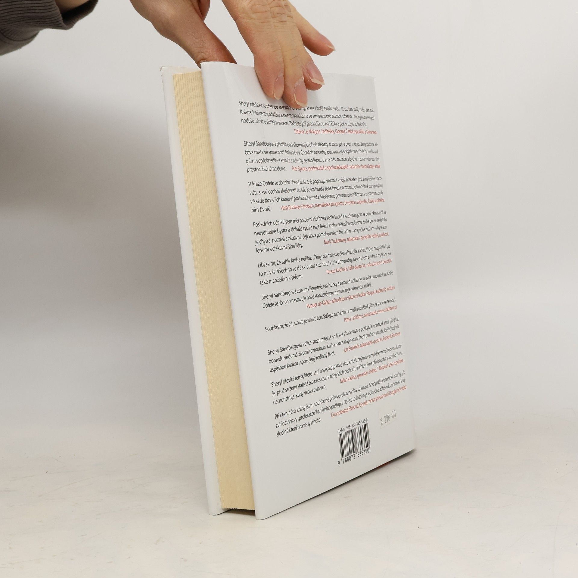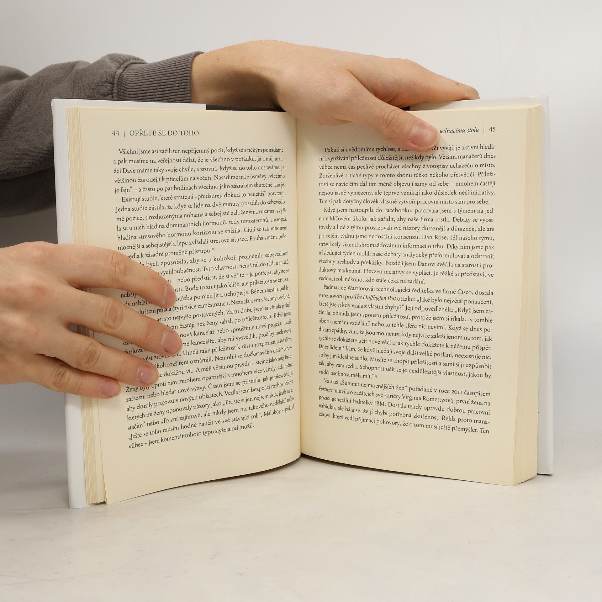Už přes 30 let absolvuje americké vysoké školy více žen než mužů. Ve vedení veřejných i soukromých institucí jsou však ženy v naprosté menšině. V rozhodnutích, která se dotýkají nás všech, tak nejsou hlasy žen přiměřeně zastoupeny. Kniha Opřete se do toho zkoumá, proč se ženy navzdory svým akademickým úspěchům nedostávají do vedení klíčových institucí a nabízí přesvědčivá a rozumná řešení, jak mohou plně využít svůj potenciál. Sheryl Sandbergová je první ženou (COO, tedy provozní ředitelkou) mediálního gigantu Facebook a jednou ze stovky nejvlivnějších lidí na světě podle žebříčku časopisu Time. Tato kniha je vyústěním jejích snah upozornit na zažité genderové předsudky, které ovlivňují chování žen, a uzavírají tak bludný kruh jejich společenské pozice. Pomocí četných studií a humorných historek z vlastního života vykresluje problematiku žen na trhu práce a nabízí rady, jak z tohoto bludného kruhu vystoupit a vybudovat skutečnou rovnost mezi pohlavími. Opřete se do toho je působivým apelem na odbourání společenských předsudků, které ženám svazují ruce v dosahování vysněných cílů. Kniha vychází v úzké kooperaci se Sheryl Sandbergovou. Autorkou předmluvy českého vydání je ředitelka ING Pojišťovny pro Českou republiku a Slovensko Renata Mrázová.