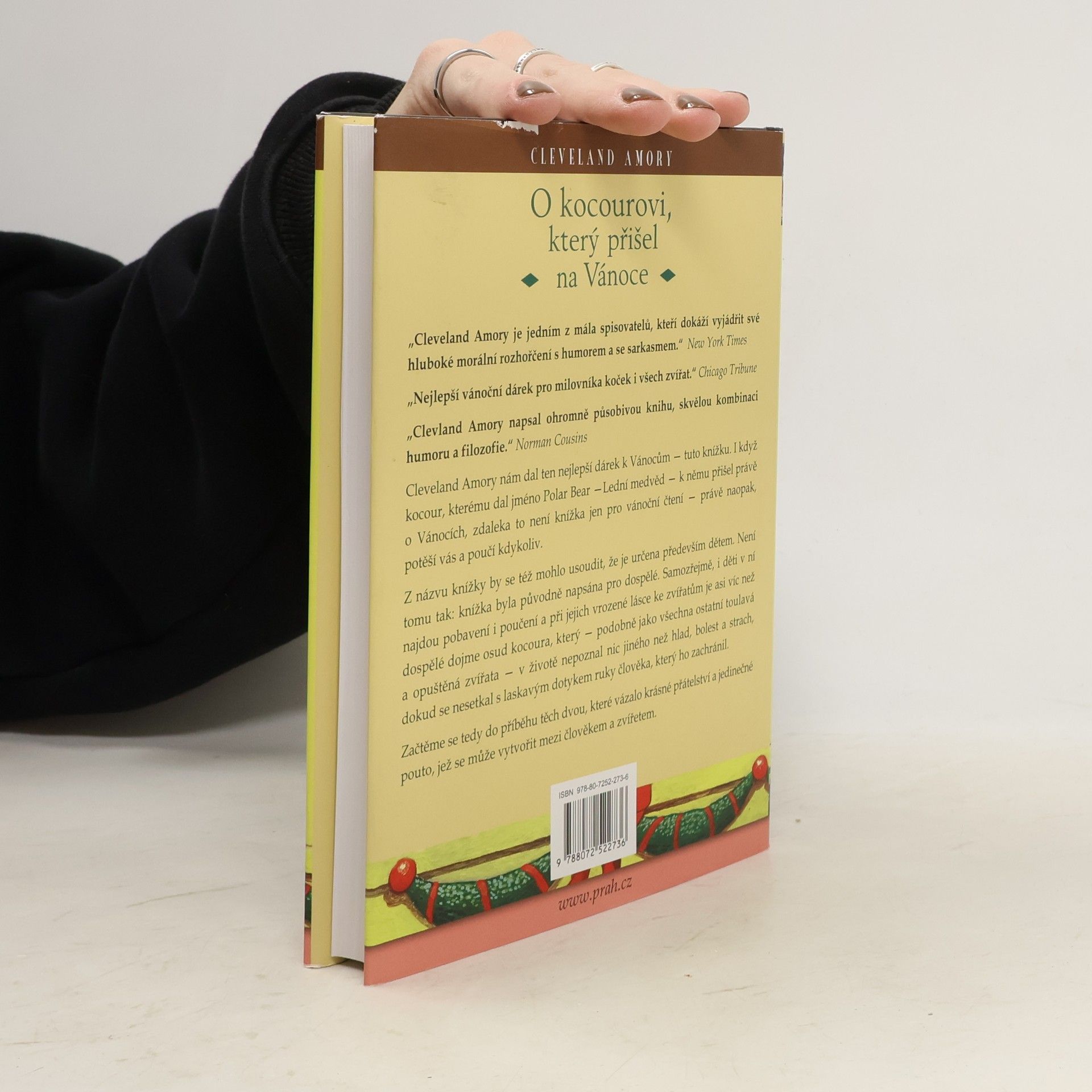Cleveland Amory nám dal ten nejlepší dárek k Vánocům - tuto knížku. Ačkoliv jeho kocour, kterému dal jméno Polar Bear, opravdu k němu přišel o Vánocích, zdaleka to není knížka jen pro vánoční čtení. Naopak, potěší vás a poučí, kdykoliv v roce ji začnete číst. Knížka byla napsána hlavně pro dospělé; ti v ní naleznou mnoho nových poznatků a velkou dávku humoru. Ale i děti v ní najdou zalíbení, a při jejich vrozené lásce ke zvířatům je možná víc než dospělé dojme osud Polar Bear, který ve svém životě nepoznal nic jiného než hlad, bolest a strach, a pocítil laskavý dotyk lidské ruky teprve, když jej pan Amory zachránil a vzal k sobě domů.