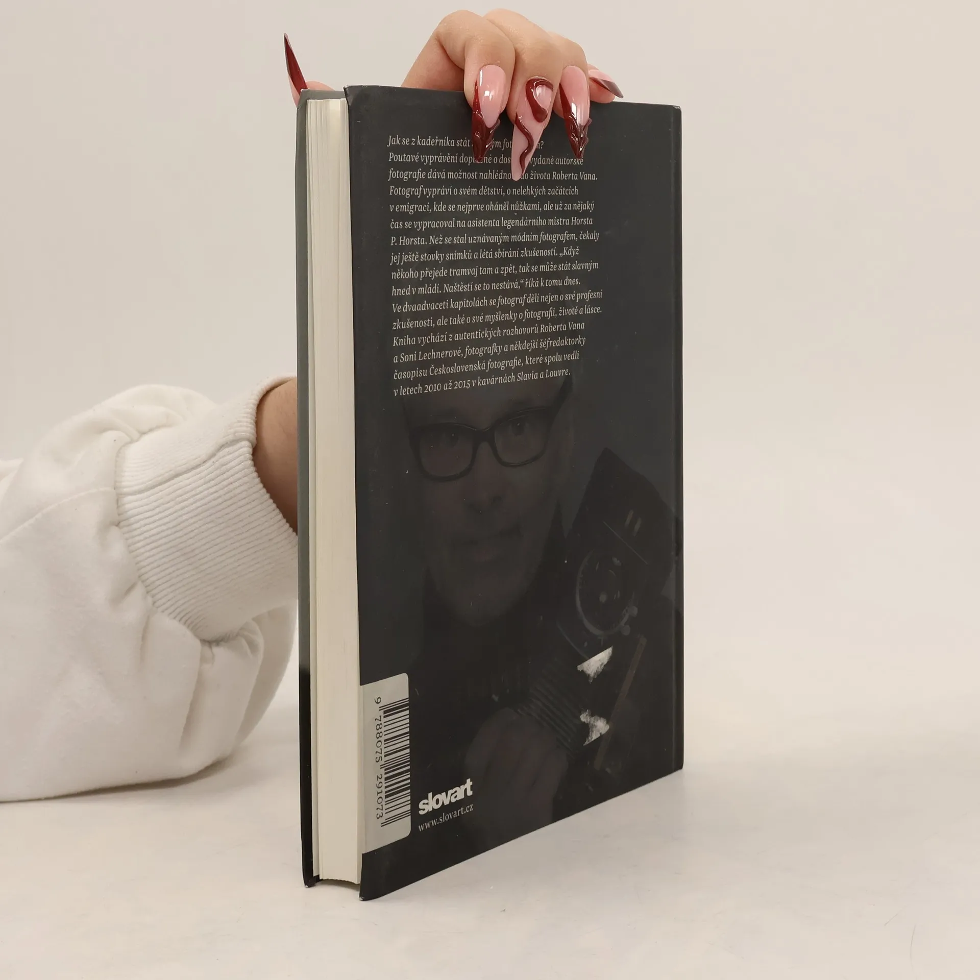 Jak se Robert Vano stal slavným fotografem… nejen to se dozvíte ve dvaceti dvou kapitolách. Poutavé vyprávění, doplněné dosud nepublikovanými fotografiemi, dává čtenářům možnost nahlédnout do života této charismatické osobnosti, připomene časy autorova dětství i nelehkých začátků v emigraci v USA, kde začínal jako asistent legendního mistra odboru Horsta P. Horsta. Robert Vano se v knize podělí nejen o profesionální zkušenosti, ale i o svoje myšlenky o práci, fotografii a o životě. Kniha vychází z autentických rozhovorů Roberta Vana a Soni Lechnerové, bývalé šéfredaktorky časopisu Československá fotografie, které vznikali v letech 2010 až 2015 při jejich setkáních v pražských kavárnách Slavie a Louvre.