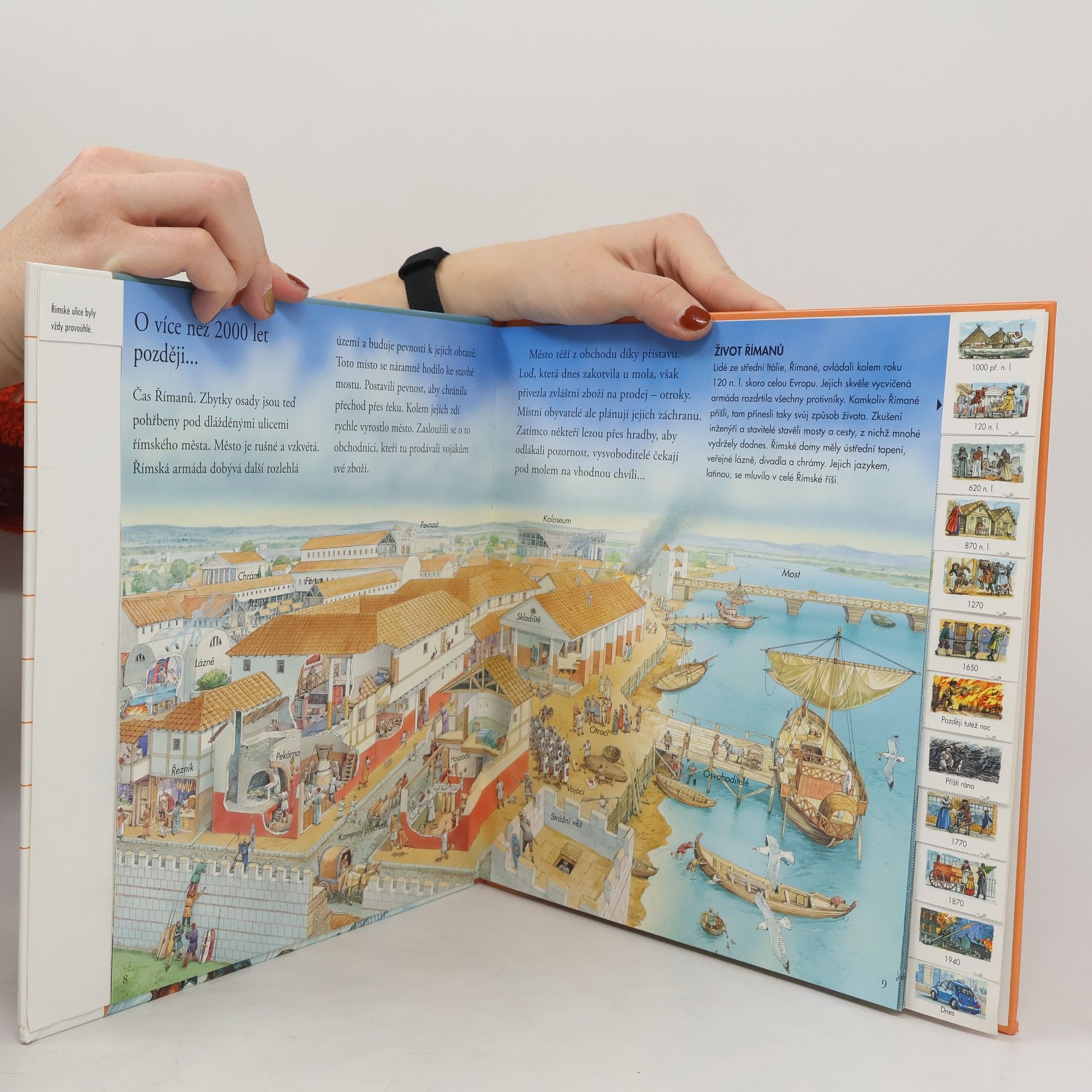 Poznej historii jednoho města. Pomocí pásku na boku každé strany můžeš cestovat časem do minulosti o dny, léta nebo staletí - přechodem z jedné strany na druhou. Je to vzrušující cesta! Sleduj od počátku vývoj malé osady rolníků, její proměnu v římskou pevnost, vikinské centrum obchodu a středověké město s katedrálou. Podívej se, jak město shořelo, jak bylo znovu postaveno, bombardováno během 2. světové války a jak se nakonec proměnilo v moderní metropoli.
