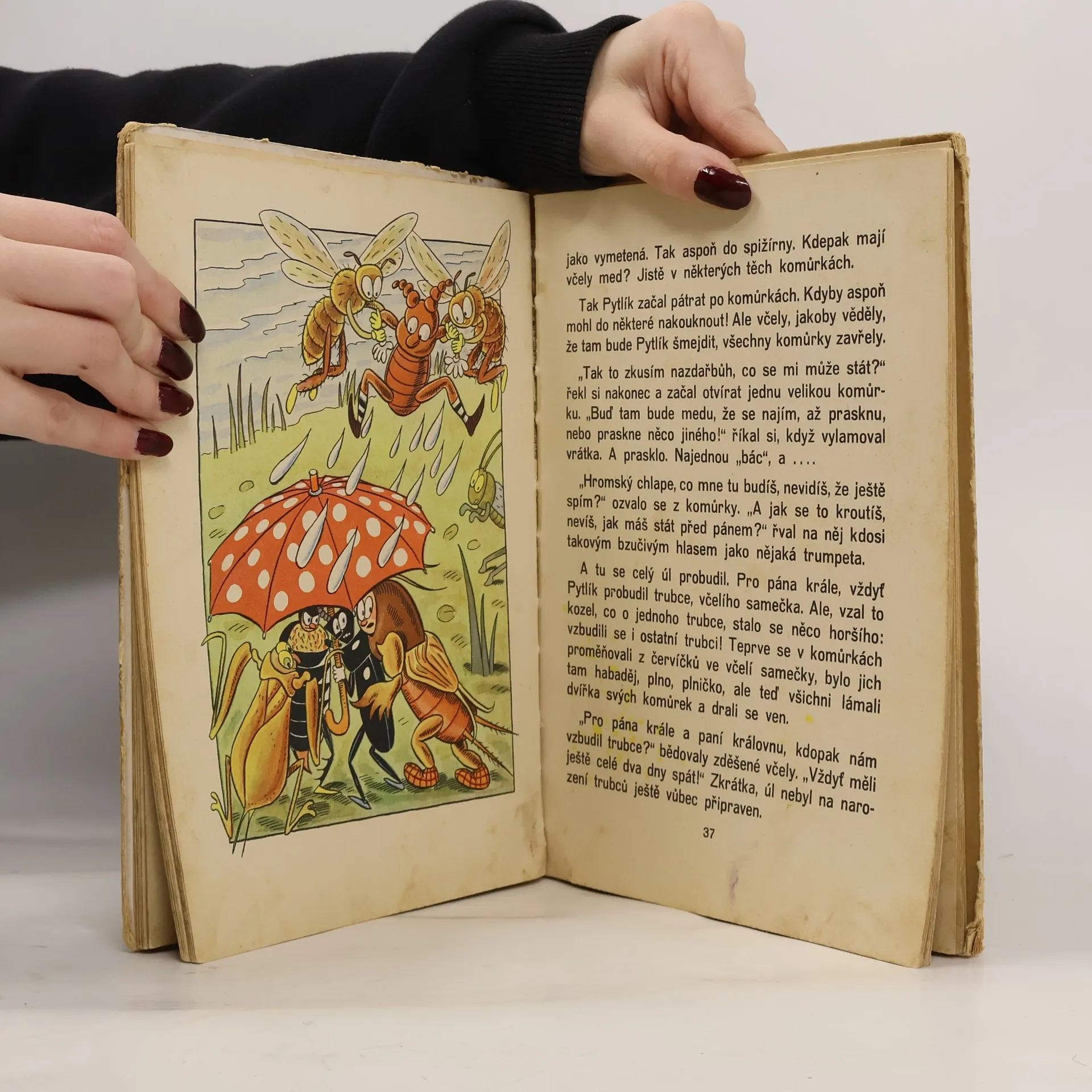 Brouk Potemník opravdu, ale opravdu nemá smysl pro humor. A kdo by také měl, kdyby ho pronásledovala banda rozdováděných broučků, volala: „Chyťte pušky, kulomety, zamiřte hned do poplety!“, a nezvedený brouček Toníček by ho bouchal plecháčkem do hlavy? Není divu, že přísahal Pytlíkovi věčnou pomstu. Rozhodl se, že z něj udělá přinejmenším píseček do zahrádky. Má k ruce i schopné pomocníky – koktavou Krtonožku, které Pytlík odehnal zákazníky od krámku, chrousta, který vzlétá do vzduchu tak dlouho, až z toho všichni usnou, a placatou, zablácenou Splešťuli s dlouhými klepety a vysloveně detektivními sklony. Naštěstí Pytlíka (i když zdaleka ne nezištně) zachrání včely a odnesou ho k sobě do úlu, aby jim tam kropil cestičky. Pytlík však není žádný příkladný zaměstnanec – nechá se krmit jako děťátko, krade cukrovíčko… a je tak nenasytný, že nakonec vyburcuje trubce a v úlu zavládne zmatek. Pytlík musí pryč, ale jeho dobrodružství zdaleka nekončí…