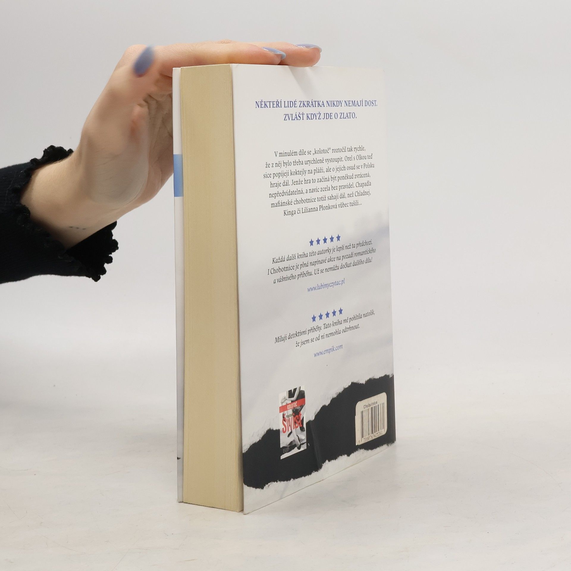 Román Chobotnice od Pauliny Świst je další silná kniha od nejpopulárnější polské debutantky posledních několika let. Po bestselleru s názvem Kolotoč nastal čas na pokračování, kde už nepřichází na scénu jen finanční machinace a plamenná vášeň, ale také pašování zlata a aféra katolické církve. Policista z ústřední vyšetřovací kanceláře Michał Grosicki jede na služební misi do Horního Slezska. Do zločinecké organizace se mu podaří proniknout natolik dobře, že jej nechá zatknout tamní prokurátor Zimnicki. Ale to je teprve začátek nového obřího spiknutí, do něhož jsou zapojení i nám dobře známí hrdinové z prvního dílu – Orel a Olka. Vše nasvědčuje tomu, že příběh finančních podvodů zdaleka neskončil útěkem z Polska… Četba Chobotnice je nefalšovaná jízda bez řídítek. Aféra střídá aféru a ve hře je toho stále víc. To všechno se přitom – jak už jsme zvyklí – odehrává v atmosféře žhavé vášně. Paulina Świst dokáže jako žádná jiná autorka brilantně spojovat bravurní líčení děje s odvážnou erotikou a tajemstvími právnického světa. Spisovatelka pracuje zároveň jako advokátka specializující se na trestní právo a důkladně díky tomu zná temné stránky polského trestního systému. Na základě vlastních zkušeností vystavěla další detektivní příběh, který by se klidně mohl odehrát i ve skutečnosti. Ostatně kdo ví, jestli se skutečně nestal…