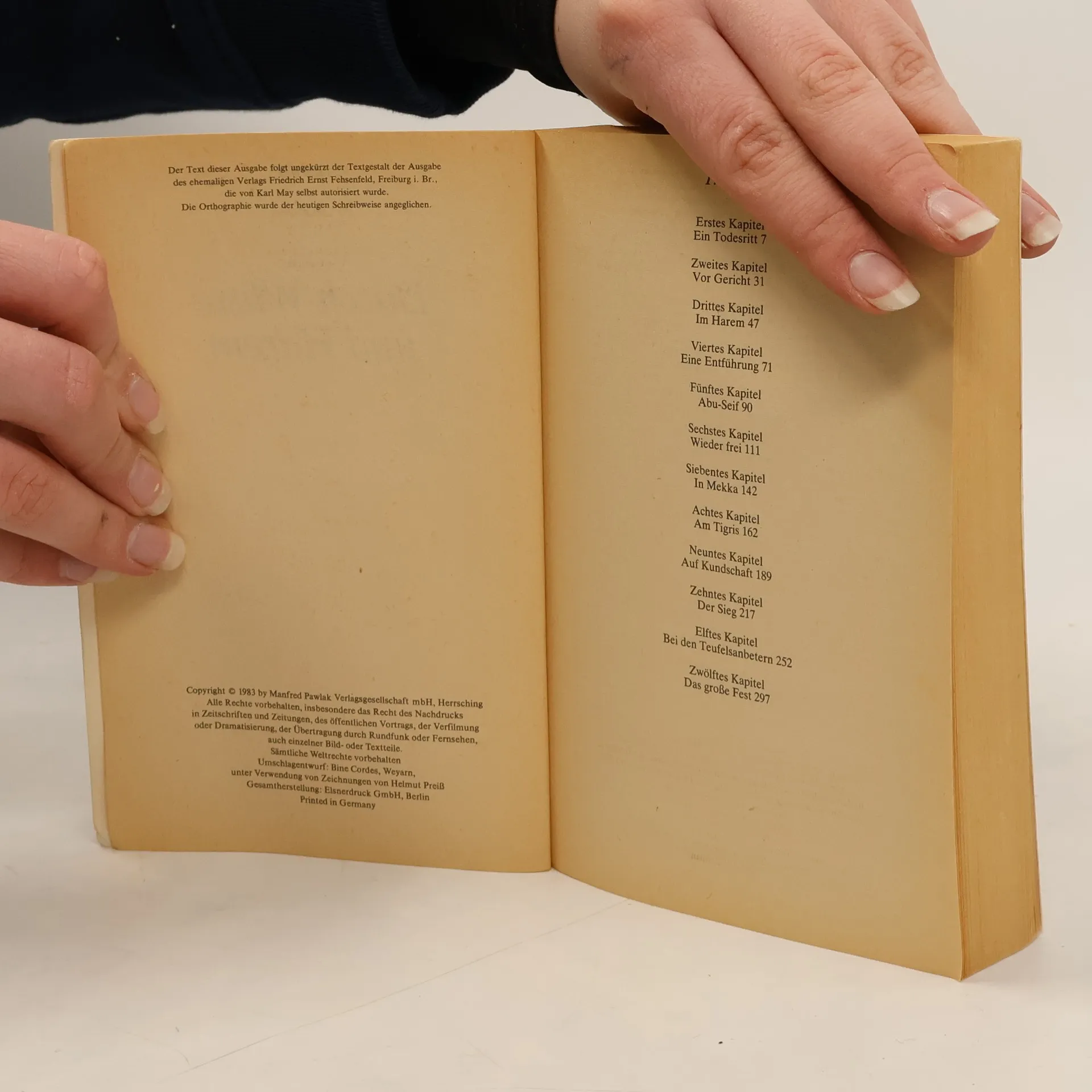 Durch die Wüste reiten Kara Ben Nemsi und Hadschi Halef Omar, sein treuer Gefährte. Der Fund einer Leiche bei den Salzseen Nordafrikas löst ein faszinierendes Abenteuer aus, dessen Folgen den Leser sechs Bände lang in Atem halten. Schon zu Beginn erschließt sich die ganze Buntheit der orientalischen Welt. Fortsetzungen zu "Durch die Wüste": Durchs wilde Kurdistan (Band 2), Von Bagdad nach Stambul (Band 3), In den Schluchten des Balkan (Band 4), Durch das Land der Skipetaren (Band 5), Der Schut (Band 6). Quelle: Karl-May-Verlag GmbH