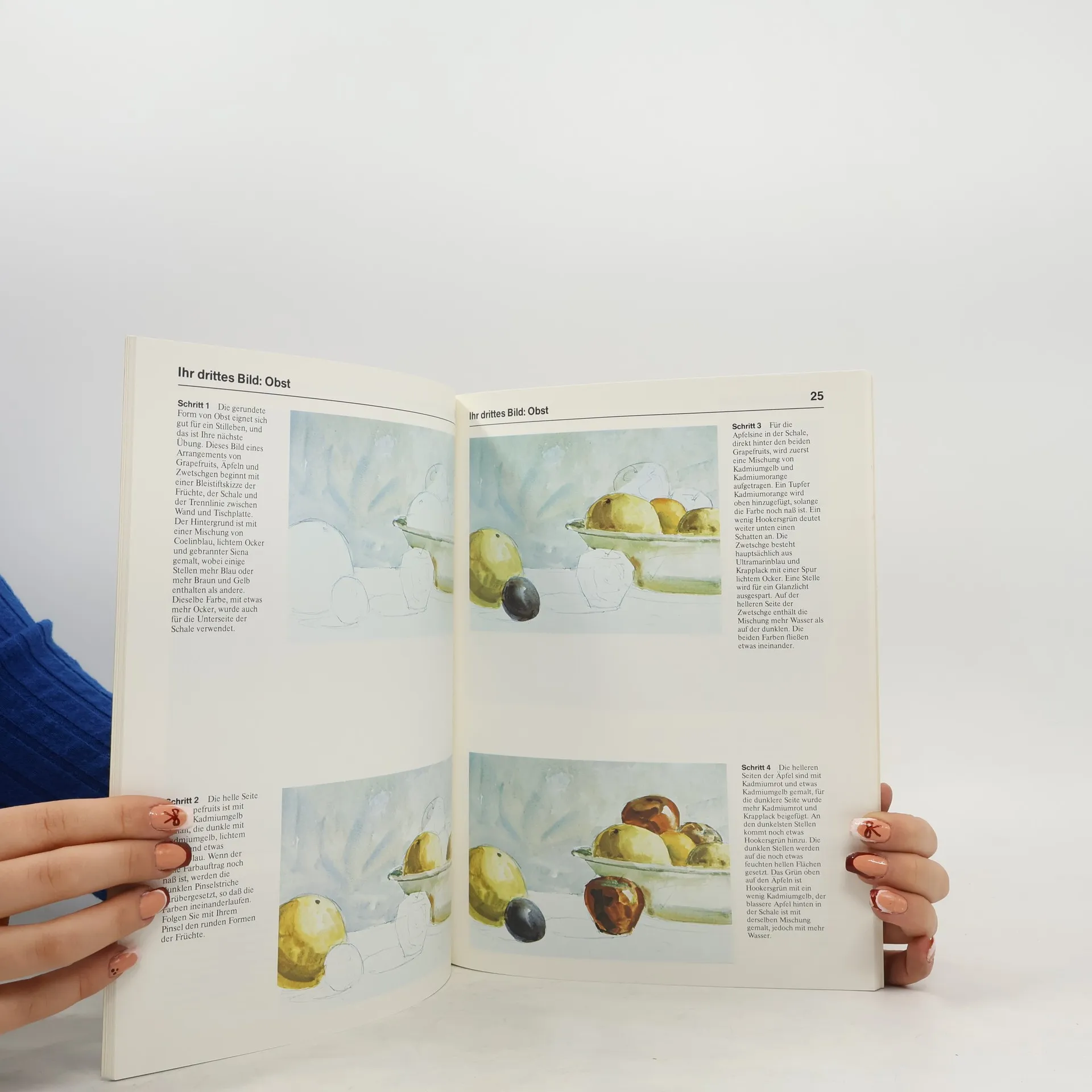 An zwölf Bildern kann der Betrachter schrittweise verfolgen, wieBlumensträuße, Porträts oder Landschaften zu malen sind.