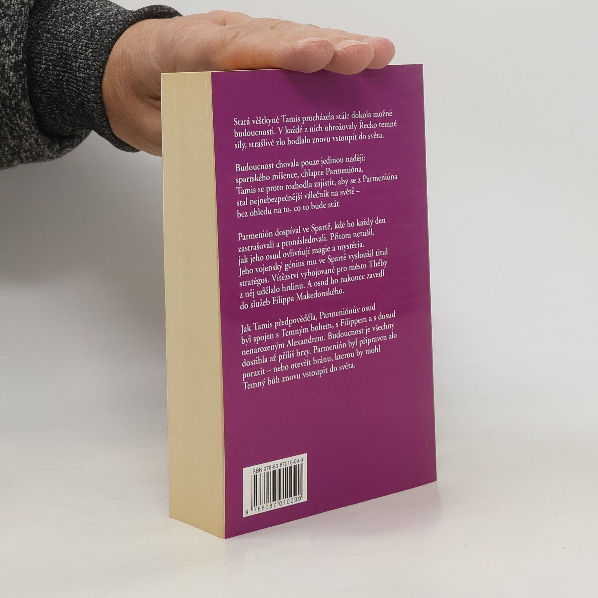 První kniha duologie Lev Makedonský. Stará věštkyně Tamis procházela stále dokola možné budoucnosti. V každé z nich ohrožovaly Řecko temné síly, strašlivé zlo hodlalo znovu vstoupit do světa. Budoucnost chovala pouze jedinou naději: spartského míšence, chlapce Parmenióna. Tamis se proto rozhodla zajistit, aby se z Parmenióna stal nejnebezpečnější válečník na světě - bez ohledu na to, co to bude stát. Parmenión dospíval ve Spartě, kde ho každý den zastrašovali a pronásledovali. Přitom netušil, jak jeho osud ovlivňují magie a mystérie. Jeho vojenský génius mu ve Spartě vysloužil titul stratégos. Vítězství vybojované pro město Théby z něj udělalo hrdinu. A osud ho nakonec zavedl do služeb Filippa Makedonského. Jak Tamis předpověděla, Parmeniónův osud byl spojen s Temným bohem, s Filippem a s dosud nenarozeným Alexandrem. Budoucnost je všechny dostihla až příliš brzy. Parmenión byl připraven zlo porazit - nebo otevřít bránu, kterou by mohl Temný bůh znovu vstoupit do světa. -- zdroj: legie.info --