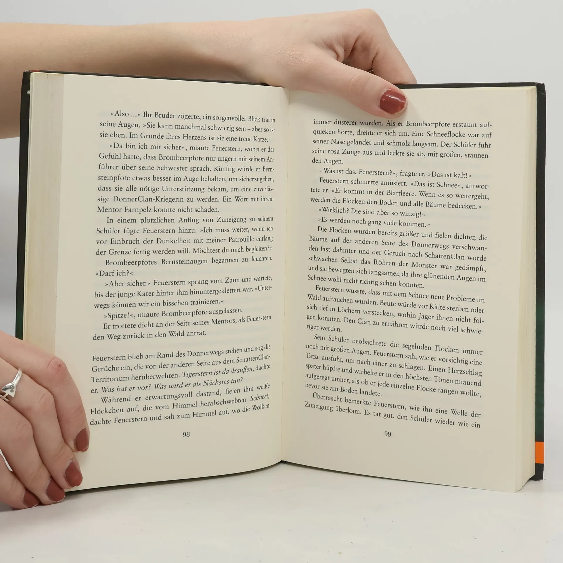 'Aus vieren werden zwei. Löwe und Tiger begegnen sich im Kampf und Blut wird den Wald regieren.' Mit diesen Worten gibt der SternenClan Feuerherz ein dunkles Rätsel auf. Was bedeutet die Prophezeiung? Feuerherz befürchtet, dass Tigerstern dahintersteckt. Steht nun der finale Kampf gegen seinen größten Feind bevor? Zu spät merkt er, dass sich das Verhängnis von ganz anderer Seite eingeschlichen hat: Teuflische Gäste haben den Wald für sich entdeckt. Und die Weissagung scheint sich auf schreckliche Weise zu erfüllen …
