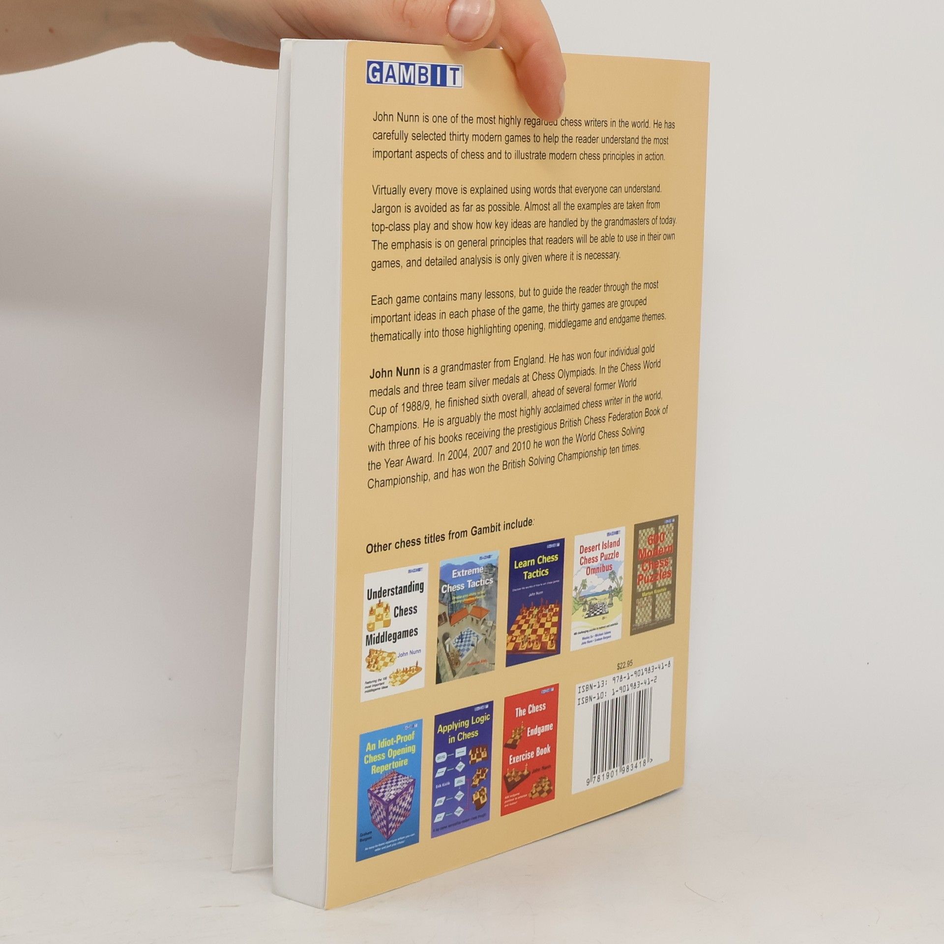 John Nunn is one of the most highly regarded chess writers in the world. He has carefully selected thirty modern games to help the reader understand the most important aspects of chess and to illustrate modern chess principles in action.Virtually every move is explained using words that everyone can understand. Jargon is avoided as far as possible. Almost all the examples are taken from recent decades and show how key ideas are handled by modern grandmasters. The emphasis is on general principles that readers will be able to use in their own games, and detailed analysis is only given where it is necessary.Each game contains many lessons, but to guide the reader through the most important ideas in each phase of the game, the thirty games are grouped thematically into those highlighting opening, middlegame and endgame themes.John Nunn is a grandmaster from England. He has won four individual gold medals and three team silver medals at Chess Olympiads. In the Chess World Cup of 1988/9, he finished sixth overall, ahead of several former World Champions. He is arguably the most highly acclaimed chess writer in the world, with three of his books receiving the prestigious British Chess Federation Book of the Year Award. He is principal author of the definitive one-volume openings encyclopedia, Nunn’s Chess Openings .