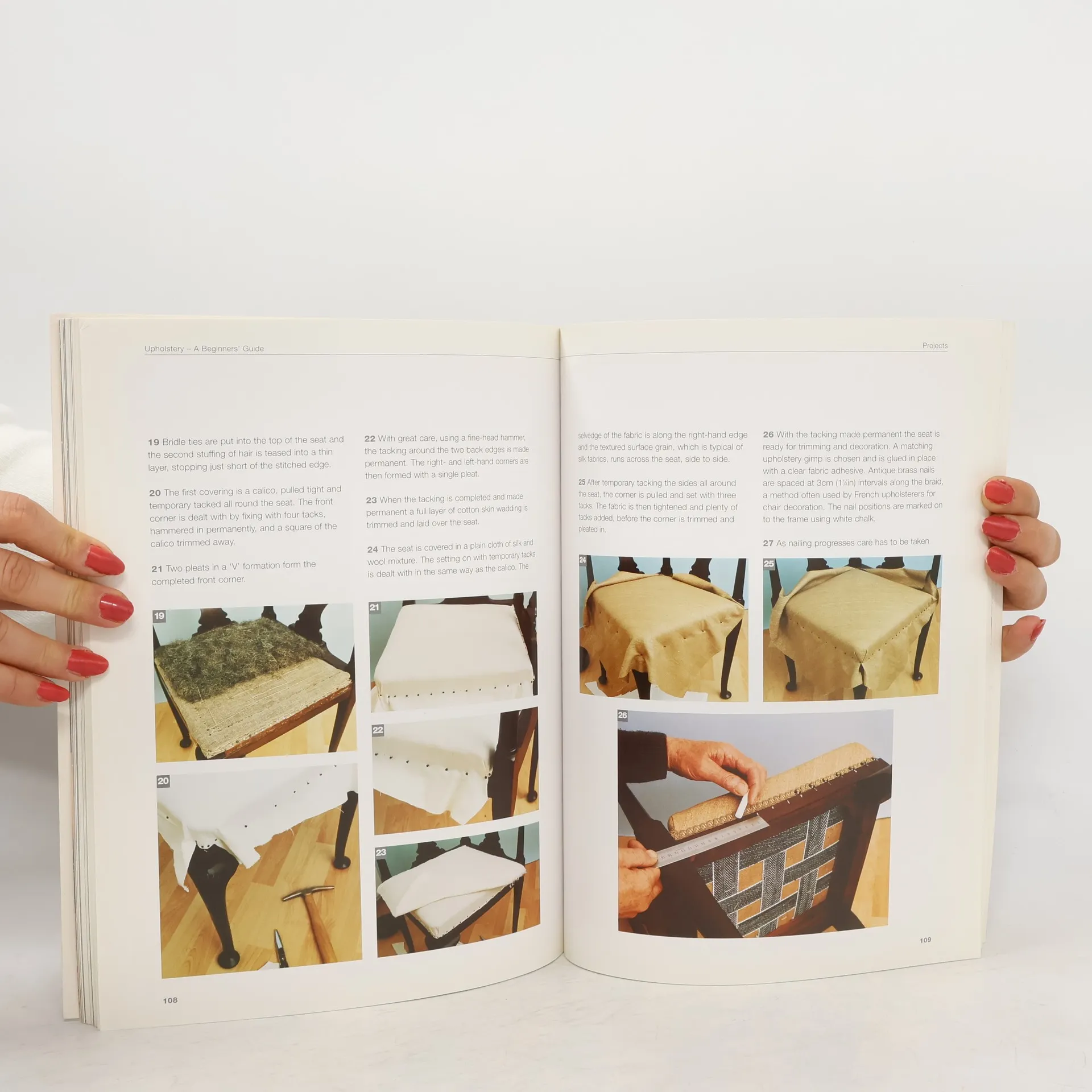 For the beginner inspired to renovate, update, or restore an existing piece of upholstery, this new and practical guide, by prominent author David James (Upholstery: A Complete Course, Upholstery: Techniques & Projects) is the essential color-illustrated reference. It contains everything a novice needs to know and covers all the basics: planning the project; buying equipment; selecting good-quality material, such as foams, animal hair, webbings, and twine; choosing the right fabrics and trimmings or making your own; removing old upholstery; and preparing new frames. Ten beautiful, fully-detailed projects, presented in order of difficulty, include a Mahogany Stool with a Drop-in Seat, small Edwardian Country-Style Armchair, 19th-century Walnut Writing Chair, Bed Headboard, Four-Fold Screen, and Balloon-Back Dining Chair.