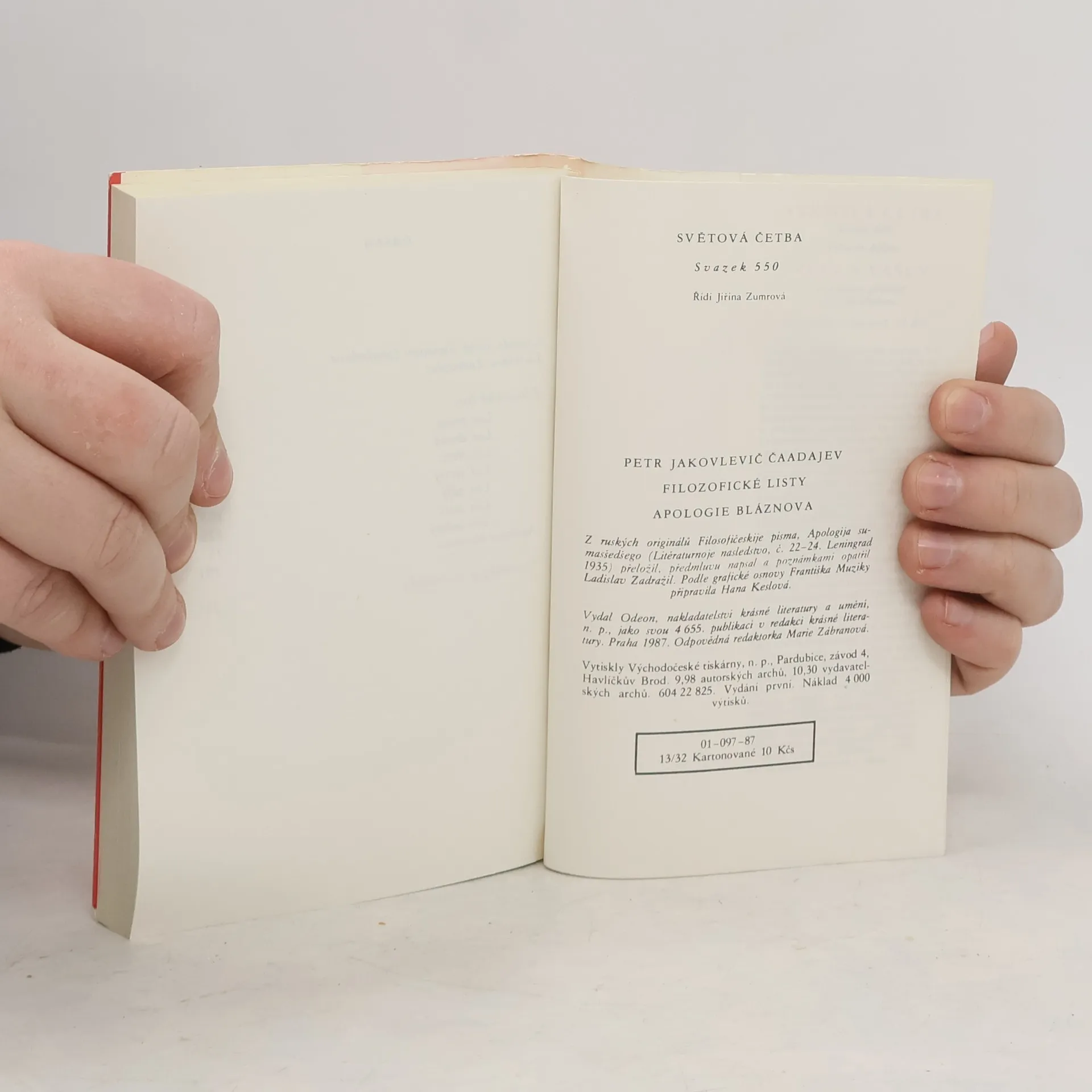 Filozofické listy. Apologie bláznova, Ladislav Zadražil, Petr Jakovlevič Čaadajev