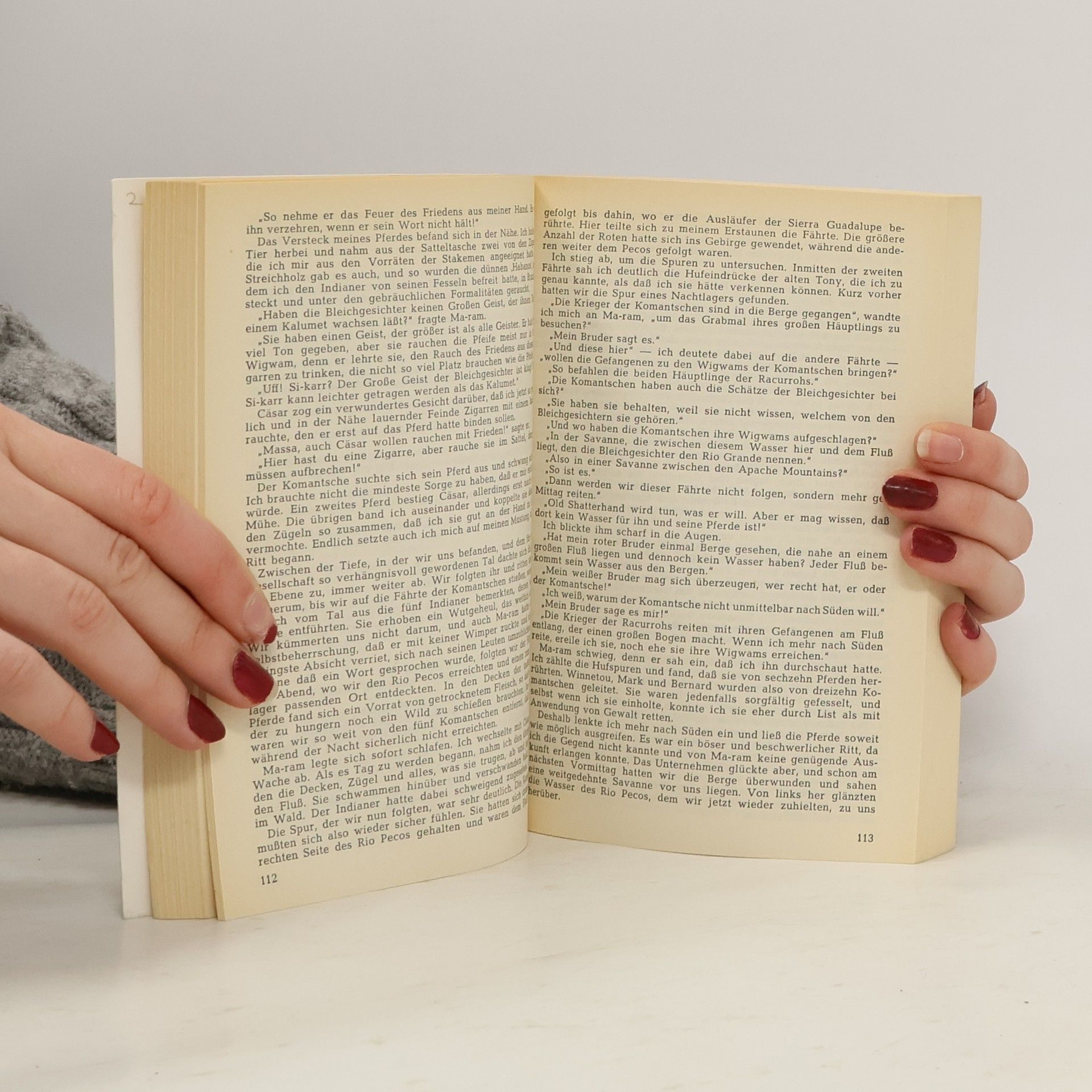 Nach vielen spannenden Erlebnissen unter den Komantschen und in Kalifornien setzt die Erzählung vom Leben und Sterben des edlen Häuptlings dem ganzen indianischen Volk ein unvergängliches Denkmal. Der Bericht über das Testament des Apatschen beschließt das tragische Geschehen. Die vorliegende Erzählung spielt in der ersten Hälfte der 70er-Jahre des 19. Jahrhunders.