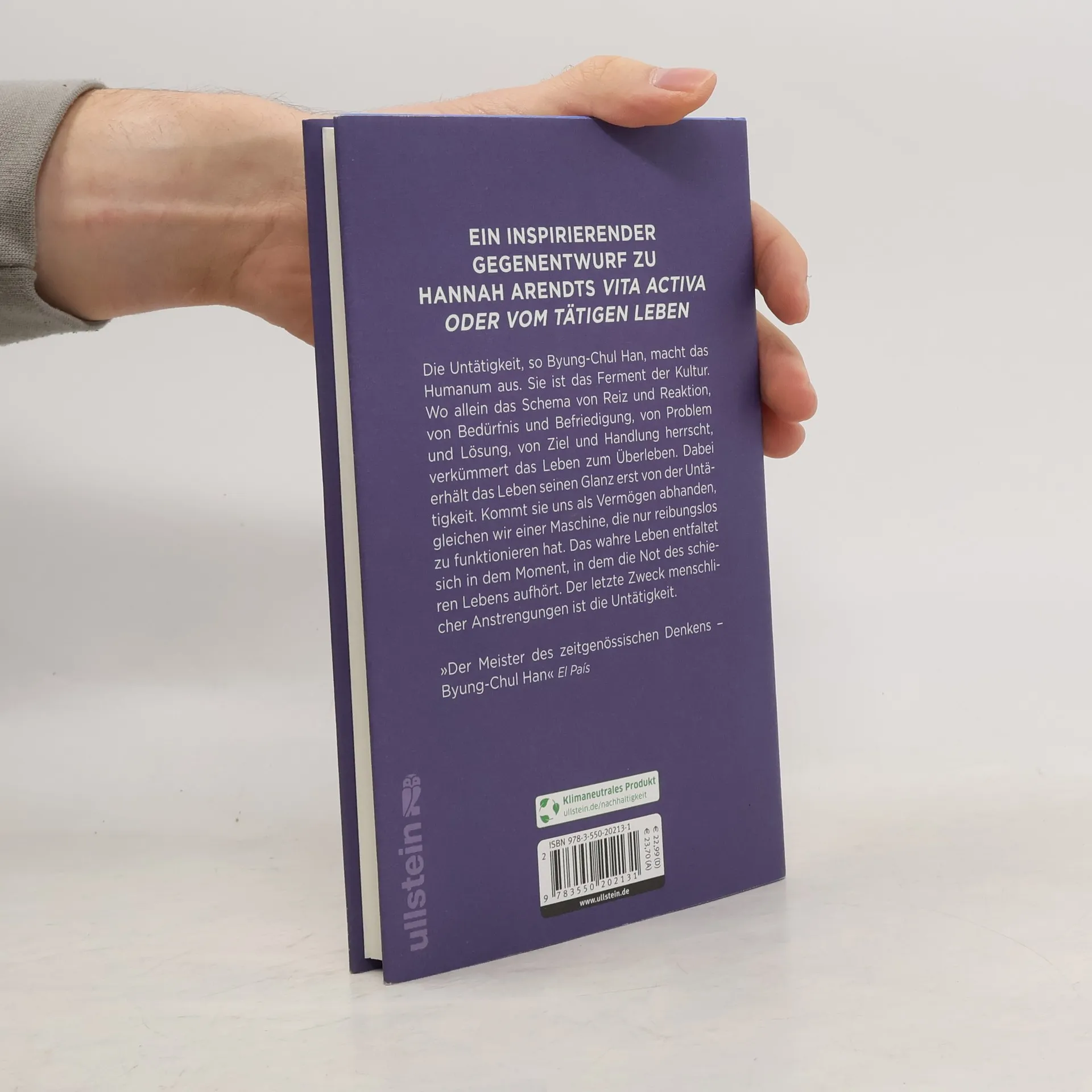 Ein inspirierender Gegenentwurf zu Hannah Arendts Vita activa oder vom tätigen Leben Die Fähigkeit zur Untätigkeit kommt uns gänzlich abhanden. Dabei ist Untätigkeit keine Negation, keine Verweigerung, keine bloße Abwesenheit von Tätigkeit, sondern ein eigenständiges Vermögen. Byung-Chul Han spürt dem Reichtum, der Pracht und der Magie der Untätigkeit nach und entwirft eine neue Lebensform.