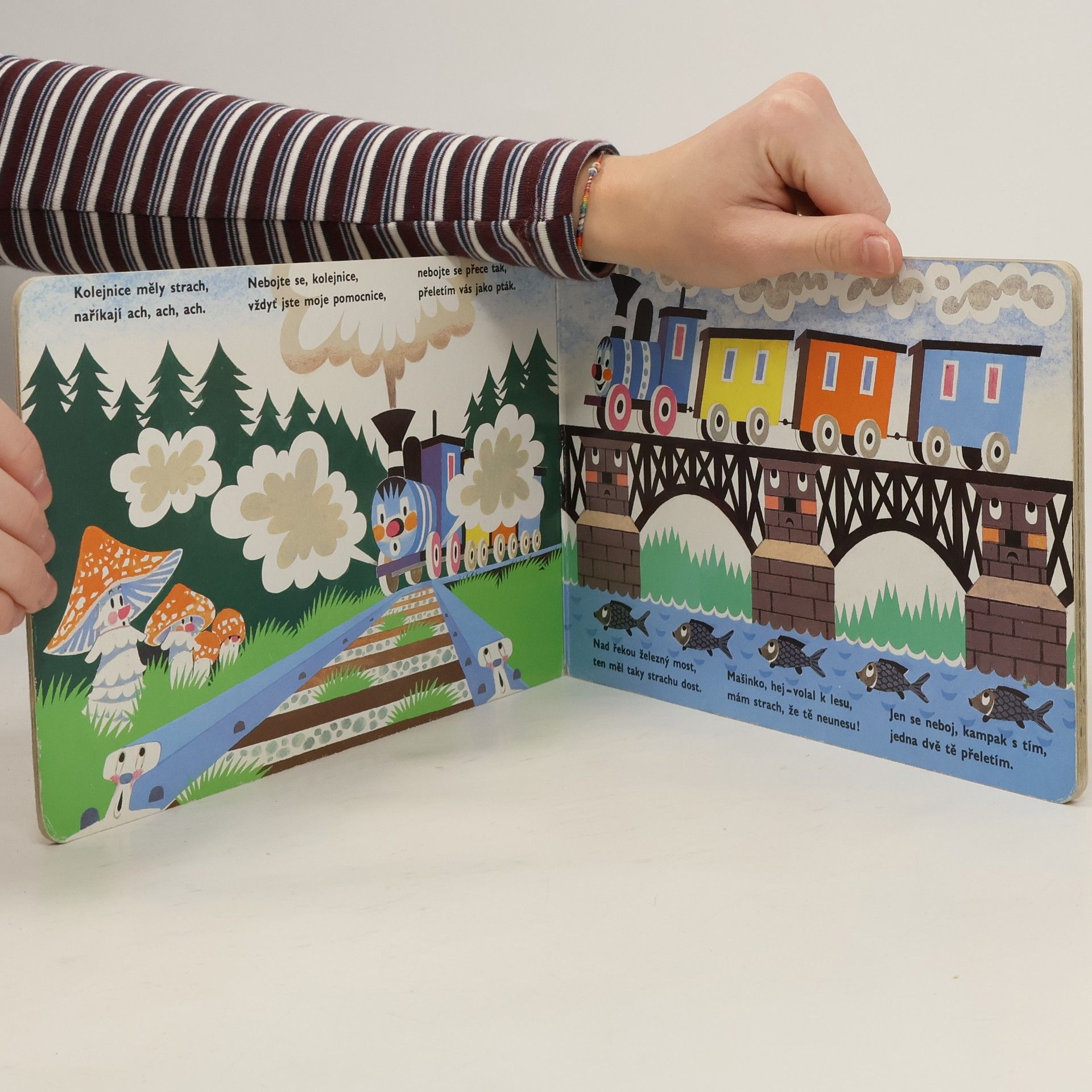 Oblíbené leporelo s verši, klasika české poezie pro děti. Veselá mašinka provází malé čtenáře po nádražích, vypravuje o průvodčích a strojvedoucím, o semaforu a výhybkách, o kolejnicích a železném mostu i o zaslouženém odpočinku po dlouhé cestě. Pro děti od dvou let.