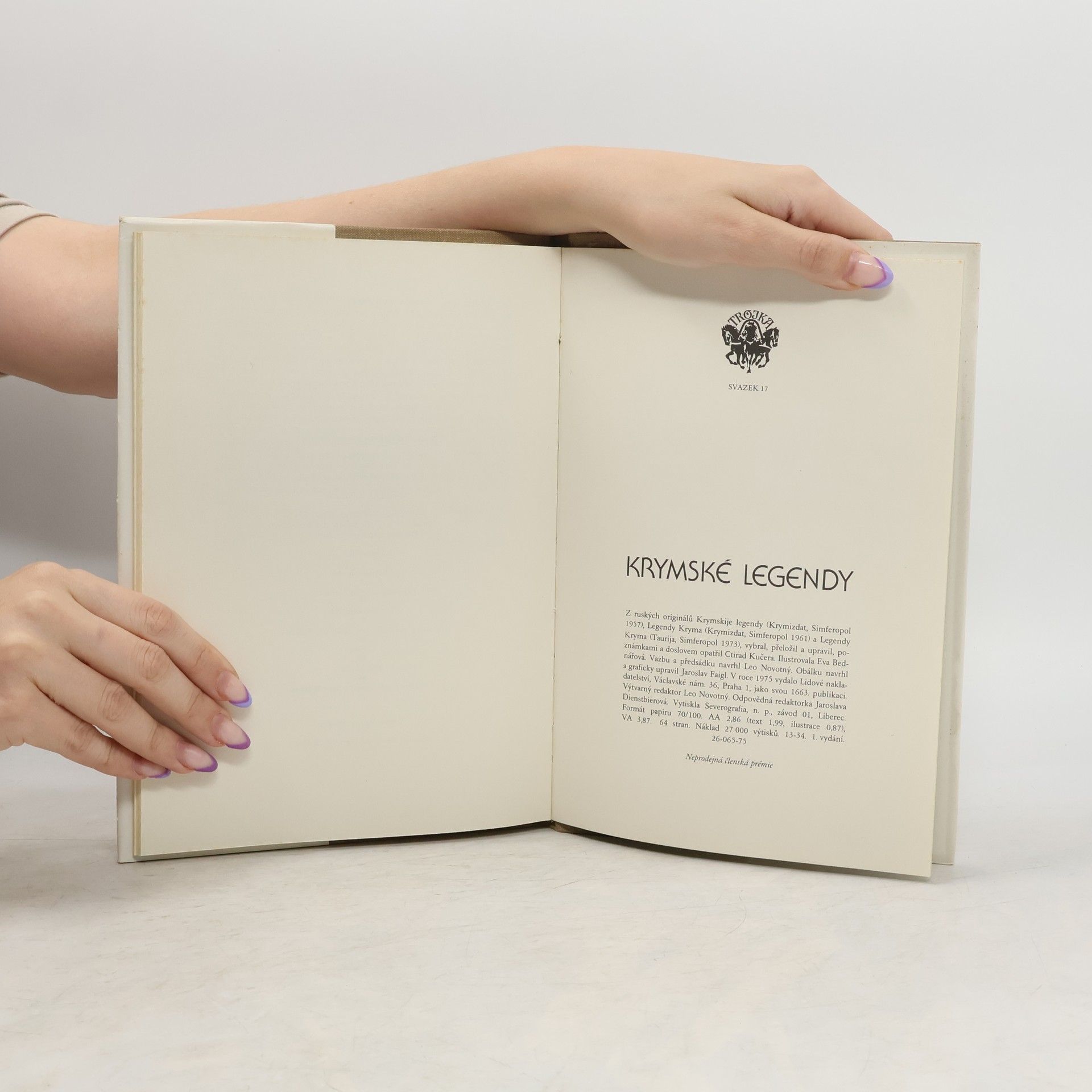 Z ruských originálů Krymskije legendy (1957), Legendy Kryma (1961) a Legendy Kryma (1973) vybral, přeložil a upravil Ctirad Kučera. 1. vydání - neprodejná členská prémie.