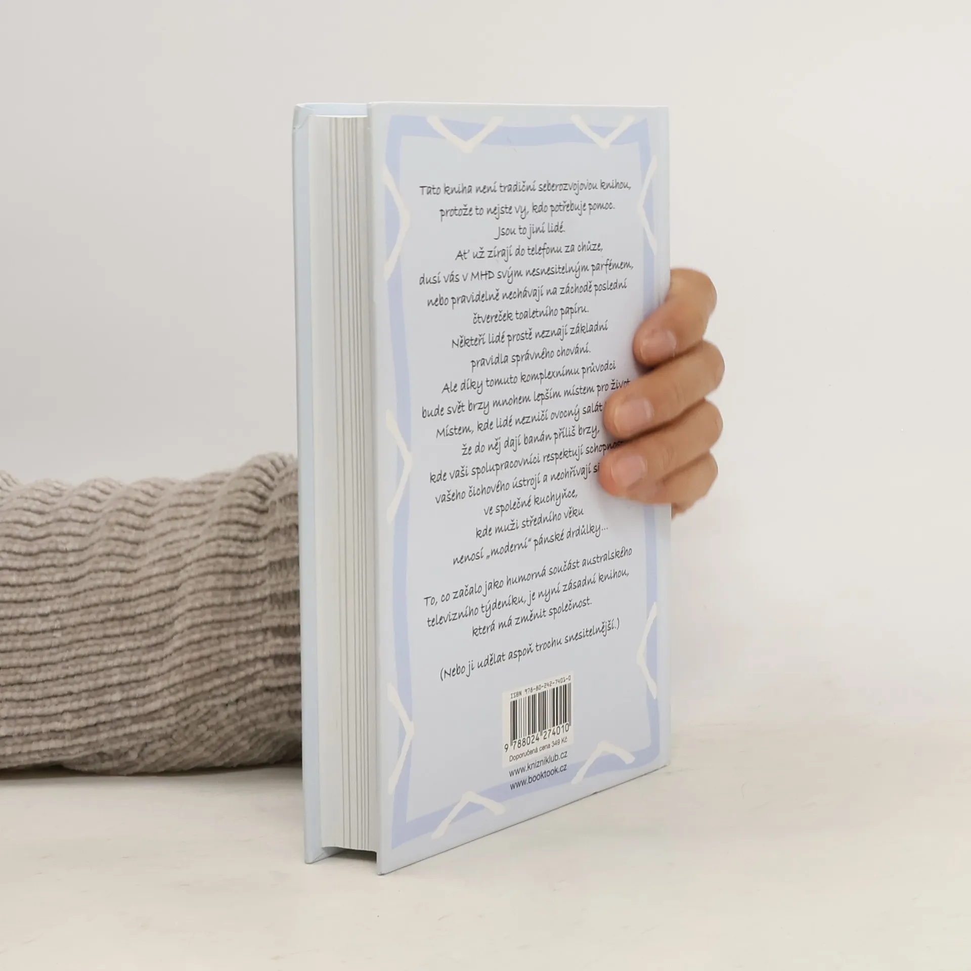 Tato kniha není tradiční seberozvojovou knihou, protože to nejste vy, kdo potřebuje pomoc. Jsou to jiní lidé. Ať už zírají do telefonu za chůze, dusí vás v MHD svým nesnesitelným parfémem, nebo pravidelně nechávají na záchodě poslední čtvereček toaletního papíru. Někteří lidé, prostě neznají základní životní pravidla. Ale díky tomuto komplexnímu průvodci moderním chováním bude svět brzy mnohem lepším místem. Místem, kde lidé nezničí ovocný salát tím, že do něj dají banán příliš brzy, kde vaši spolupracovníci respektují schopnosti vašeho čichového ústrojí a neohřívají si rybu ve společné kuchyňce, kde muži středního věku nenosí „moderní“ pánské drdůlky… To, co začalo jako vtipná součást australského televizního týdeníku je nyní zásadní knihou, která má moc změnit společnost.