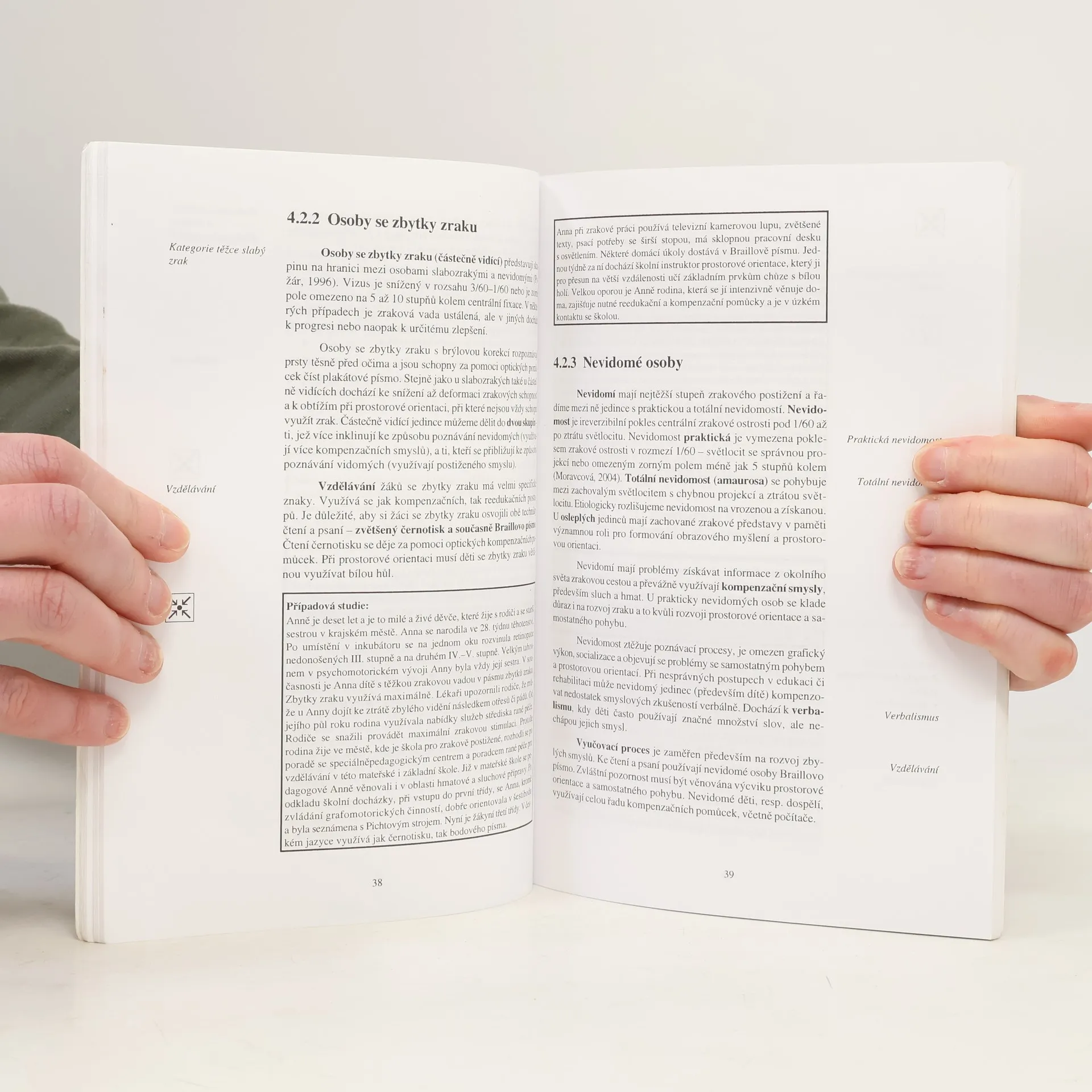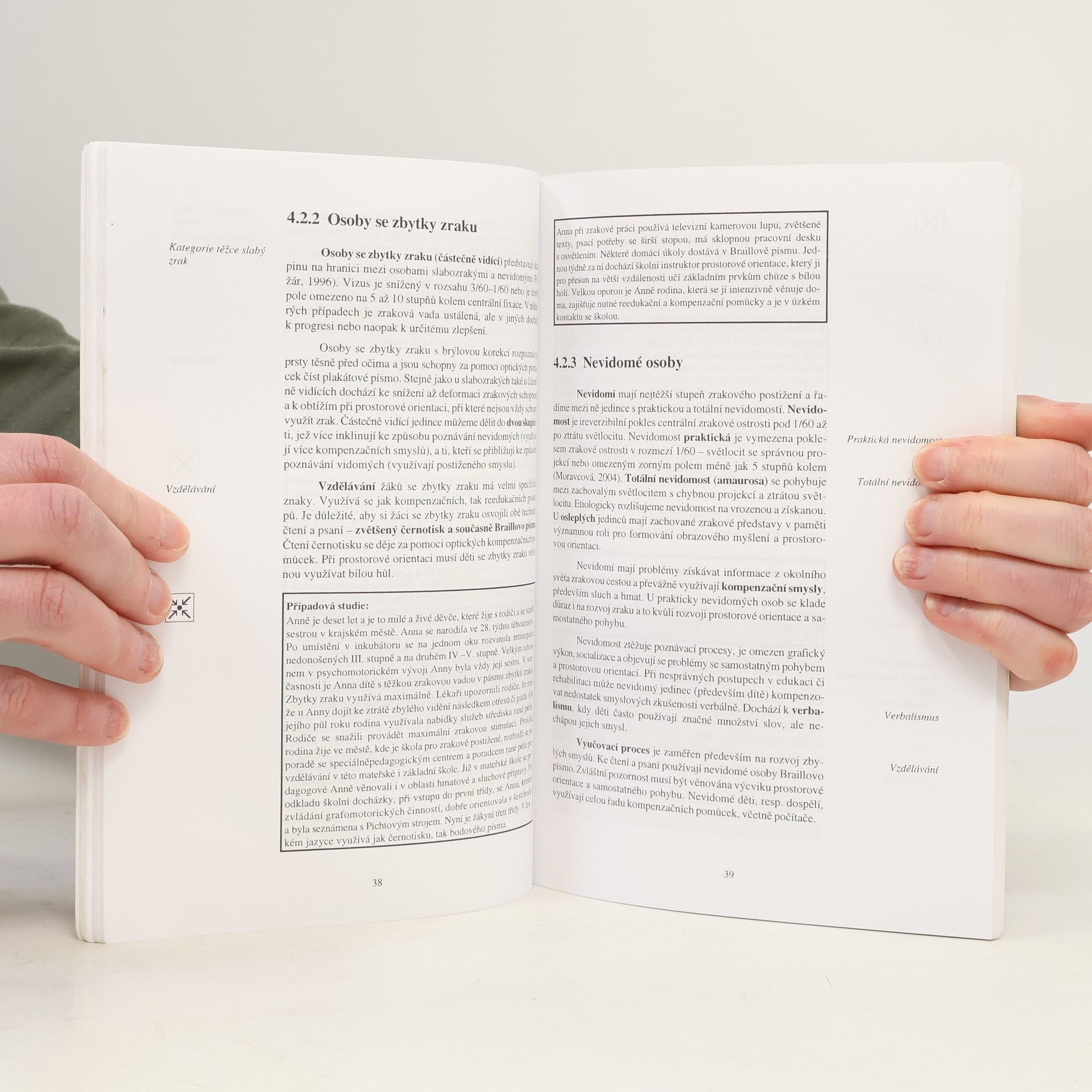 Tento studijní text byl sestaven s cílem seznámit čtenáře jednoduchým způsobem se základními poznatky z oboru oftalmopedie. V publikaci je vyhrazen prostor také anatomii a fyziologii zrakového orgánu a zrakovým vadám, jejich klasifikaci dle různých kritérií. Dále jsou zde přehledně uvedeny základní informace o výchově a vzdělávání, poradenství a možnostech rozvoje lidí se zrakovým postižením a odkazy na související odborné literární a internetové zdroje.