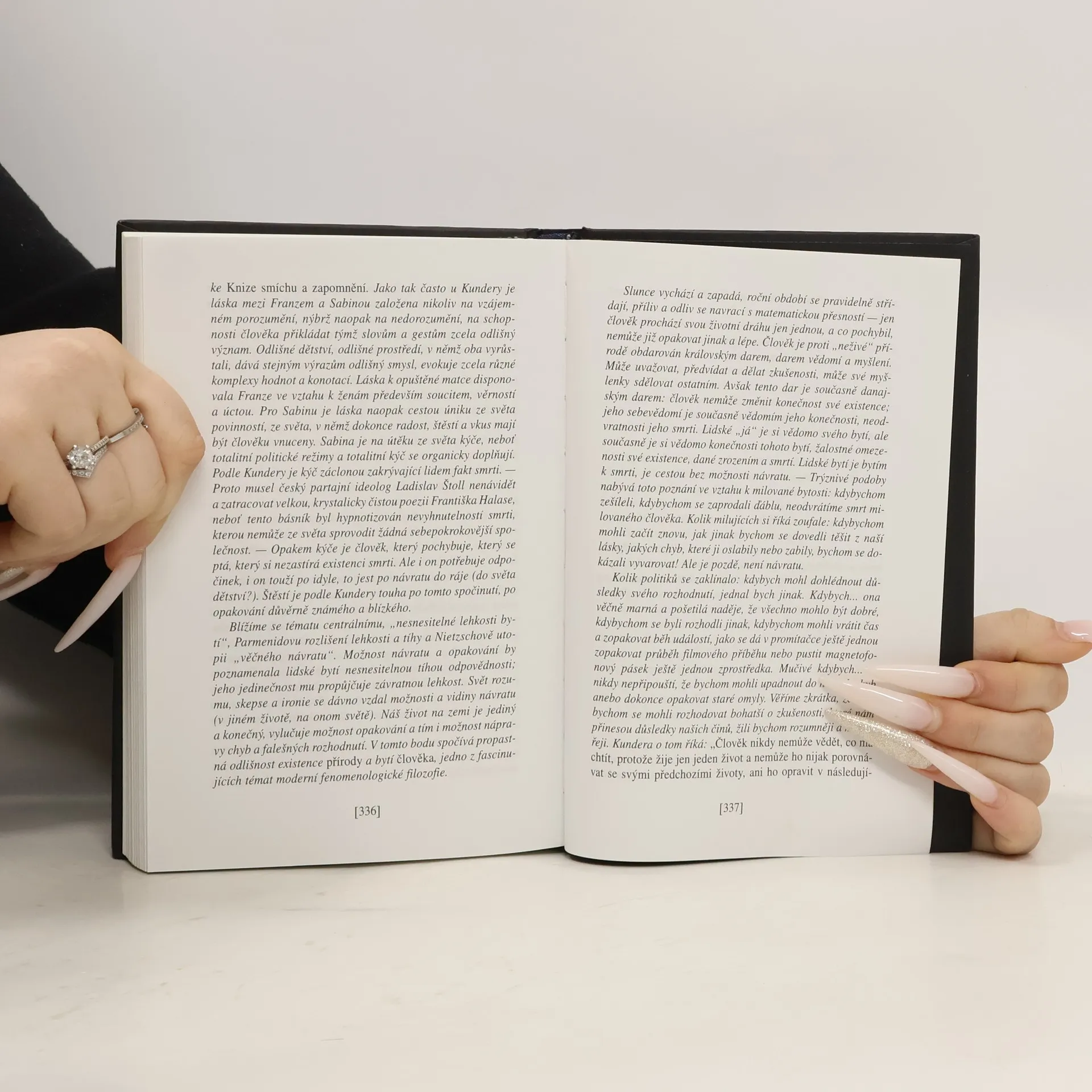 Slavný román Milana Kundery vychází poprvé v České republice; s obvyklou Poznámkou autora a s doslovem Květoslava Chvatíka. Poprvé vyšel ve francouzském překladu v roce 1984 v Paříži u Gallimarda, v roce 1985 česky v Kanadě v nakladatelství Sixty-Eight Publishers. Vyprávění o lásce, o Tereze a Tomášovi, o Sabině a Franzovi, o lehkosti a tíze bytí... „Po čtyřech letech strávených v Ženevě ubytovala se Sabina v Paříži a nemohla se vzpamatovat z melancholie. Kdyby se jí někdo ze ptal, co se jí stalo, nenašla by pro to slov. Životní drama se dá vždycky vyjádřit metaforou tíže. Říkáme, že na člověka dopadlo nějaké břemeno. Člověk to břemeno unese nebo neunese, padá pod ním, zápasí s ním, prohrává nebo vítězí. Ale co se vlastně stalo Sabině? Nic. Opustila jednoho muže, protože ho chtěla opustit. Pronásledoval ji pak? Mstil se jí? Ne. Její drama nebylo dramatem tíhy, ale lehkosti. Na Sabinu dopadlo nikoli břemeno, ale nesnesitelná lehkost bytí.“