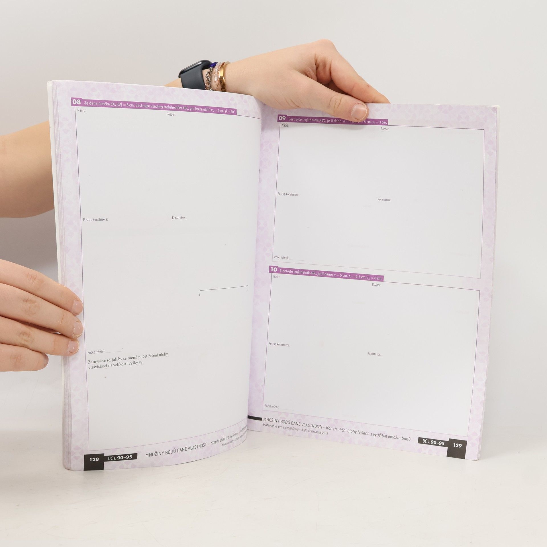 Pracovní sešit 1 - každé kapitole v učebnici odpovídá příslušná kapitola v pracovním sešitě. Ke každému tématu náleží tři úrovně úkolů seřazených podle Bloomovy taxonomie vzdělávacích cílů. V rámci jednotlivých úrovní zároveň postupně roste obtížnost zadaných cvičení, čímž je umožněno dosáhnout úspěchu všem studentům. Různorodostí úloh a snahou o propojení matematiky s praxí přispívá pracovní sešit ke zvýšenému zájmu studentů o vyučovaný předmět a zvyšuje tak jejich motivaci ke studiu.