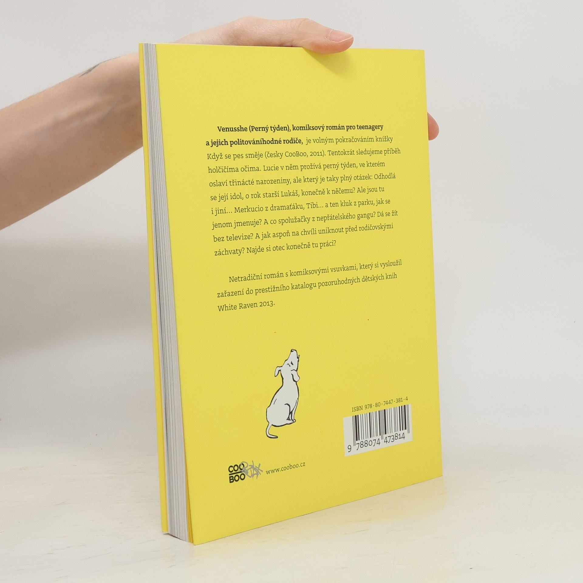 Venusshe (Perný týden), komiksový román pro teenagery a jejich politováníhodné rodiče, je volným pokračováním knížky Když se pes směje. Tentokrát sledujeme příběh holčičíma očima. Lucie v něm prožívá těžký týden, ve kterém oslaví třinácté narozeniny, ale který je taky plný otázek: Odhodlá se její idol, o rok starší Lukáš, konečně k něčemu? Ale jsou tu i jiní… Merkucio z dramaťáku, Tibi… a ten kluk z parku, jak se jenom jmenuje? A co spolužačky z nepřátelského gangu? Dá se žít bez televize? A jak aspoň na chvíli uniknout před rodičovskými záchvaty? Najde si otec konečně tu práci? Netradiční román s komiksovými vsuvkami, který si vysloužil zařazení do prestižního katalogu významných dětských knih White Raven 2013.