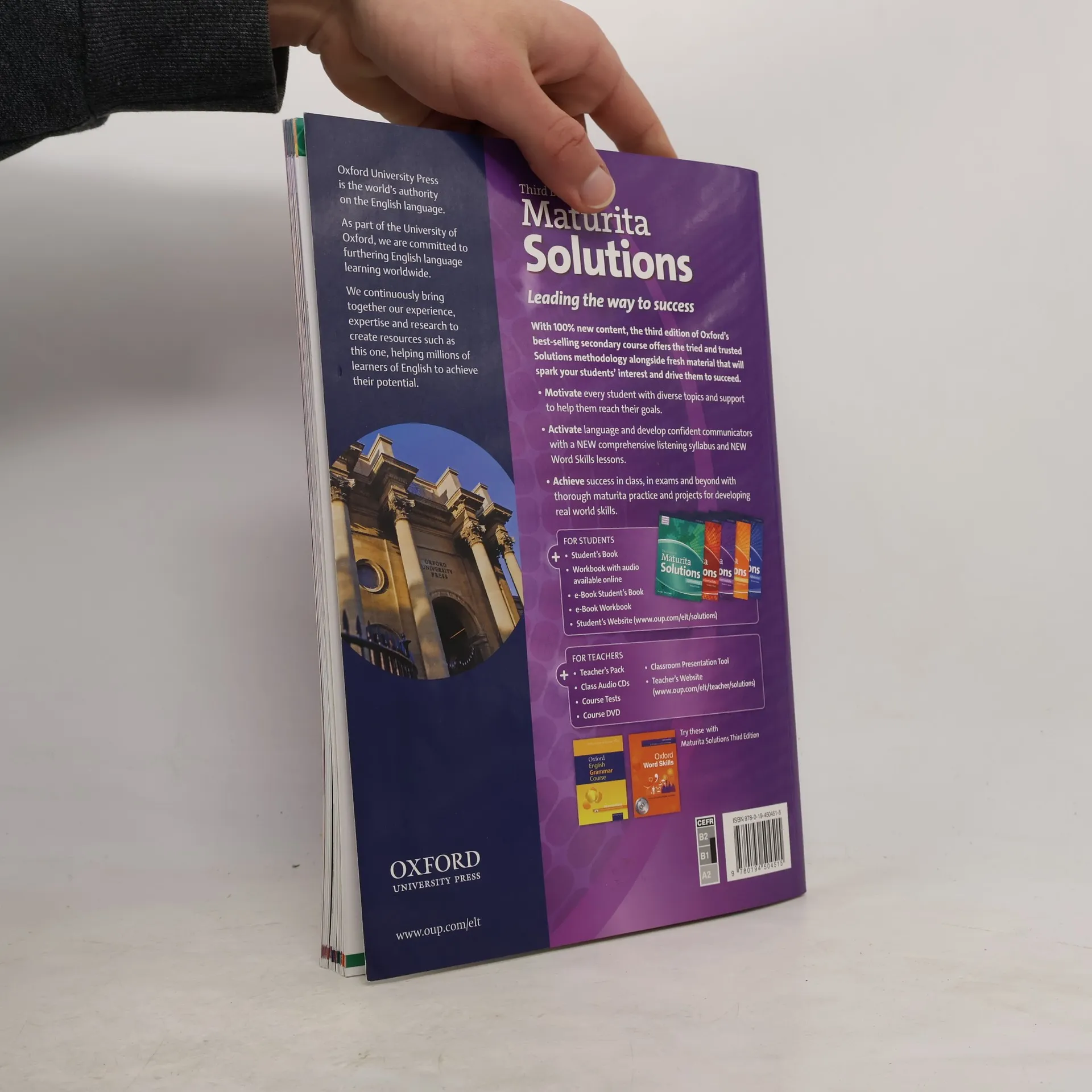 With 100% new content, the third edition of Oxford's best-selling secondary course offers the tried and trusted Solutions methodology alongside fresh and diverse material that will spark your students' interest and drive them to succeed.The Solutions Student's Book is packed full of interesting content to keep students of all abilities fully engaged and motivated.Each unit consists of eight lessons, all of which focus on a particular skill, including vocabulary, grammar, reading, speaking, and writing. New to the third edition are specific listening and word skills lessons, to help develop well-rounded, confident communicators.Additional resources, including exam skills trainer sections and extra speaking practice help consolidate what students have covered in the lessons. The supported approach to speaking, writing and exam practice ensure every student can achieve success.