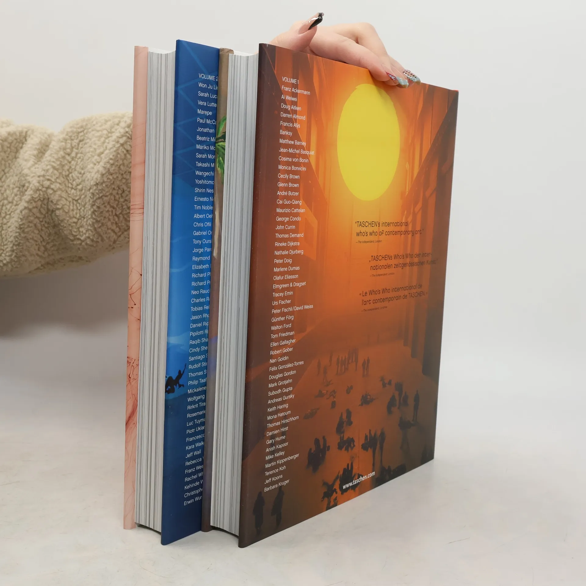 Diese zweibändige Sonderausgabe präsentiert die 100 wichtigsten Künstler aus dem TASCHEN-Titel Art at the Turn of the Millennium und den Bänden der Art-Now-Reihe. Sie dient als umfassender Leitfaden zur zeitgenössischen Kunst zu Beginn des 21. Jahrhunderts. Die Auswahl umfasst Werke von prägenden Künstlern wie Jean-Michel Basquiat, Marlene Dumas, Damien Hirst, Mike Kelley und Cindy Sherman sowie von herausragenden Künstlern der jüngeren Generation wie Glenn Brown, Natalie Djurberg und Mark Grotjahn. Zu den vertretenen Künstlern zählen unter anderem Franz Ackermann, Ai Wei Wei, Doug Aitken, Banksy, Matthew Barney, Cosima von Bonin, Cecily Brown, André Butzer, Cai Guo-Qiang, Maurizio Cattelan, George Condo, John Currin, Thomas Demand, Rineke Dijkstra, Peter Doig, Olafur Eliasson, Tracey Emin, Urs Fischer, Günther Förg, Tom Friedman, Ellen Gallagher, Robert Gober, Nan Goldin, Felix Gonzalez-Torres, Douglas Gordon, Subodh Gupta, Andreas Gursky, Keith Haring, Mona Hatoum, Martin Kippenberger, Barbara Kruger, Paul McCarthy, Beatriz Milhazes, Takashi Murakami, Wangechi Mutu, Shirin Neshat, Albert Oehlen, Chris Ofili, Gabriel Orozco, Richard Phillips, Neo Rauch, Charles Ray, Cindy Sherman, Thomas Struth, Kehinde Wiley, Christopher Wool und viele mehr.