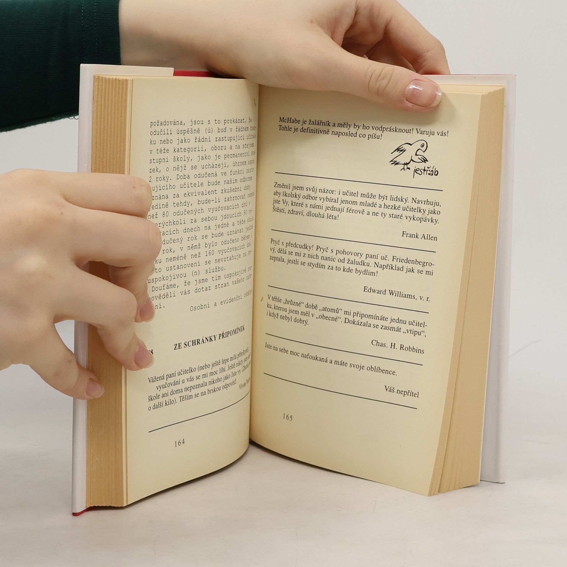 Humoristický román zachycuje poměry na newyorské střední škole, kam chodí děti černochů, přistěhovalců a různé problémové případy. Svérázné pojetí demokracie ve vztahu učitele a žáka, snaha vedení školy řídit výuku pomocí výnosů a oběžníků, propast mezi představami a skutečností - to vše vede k řadě komických i vážných situací, které autorka zachytila s neodolatelným humorem. Výroky žáků, jejich úkoly a dopisy se v pestrém sledu střídají s oběžníky a s příkazy i se vzájemnou korespondencí vedení a učitelů a to vše vytváří velmi autentický a působivý celek.