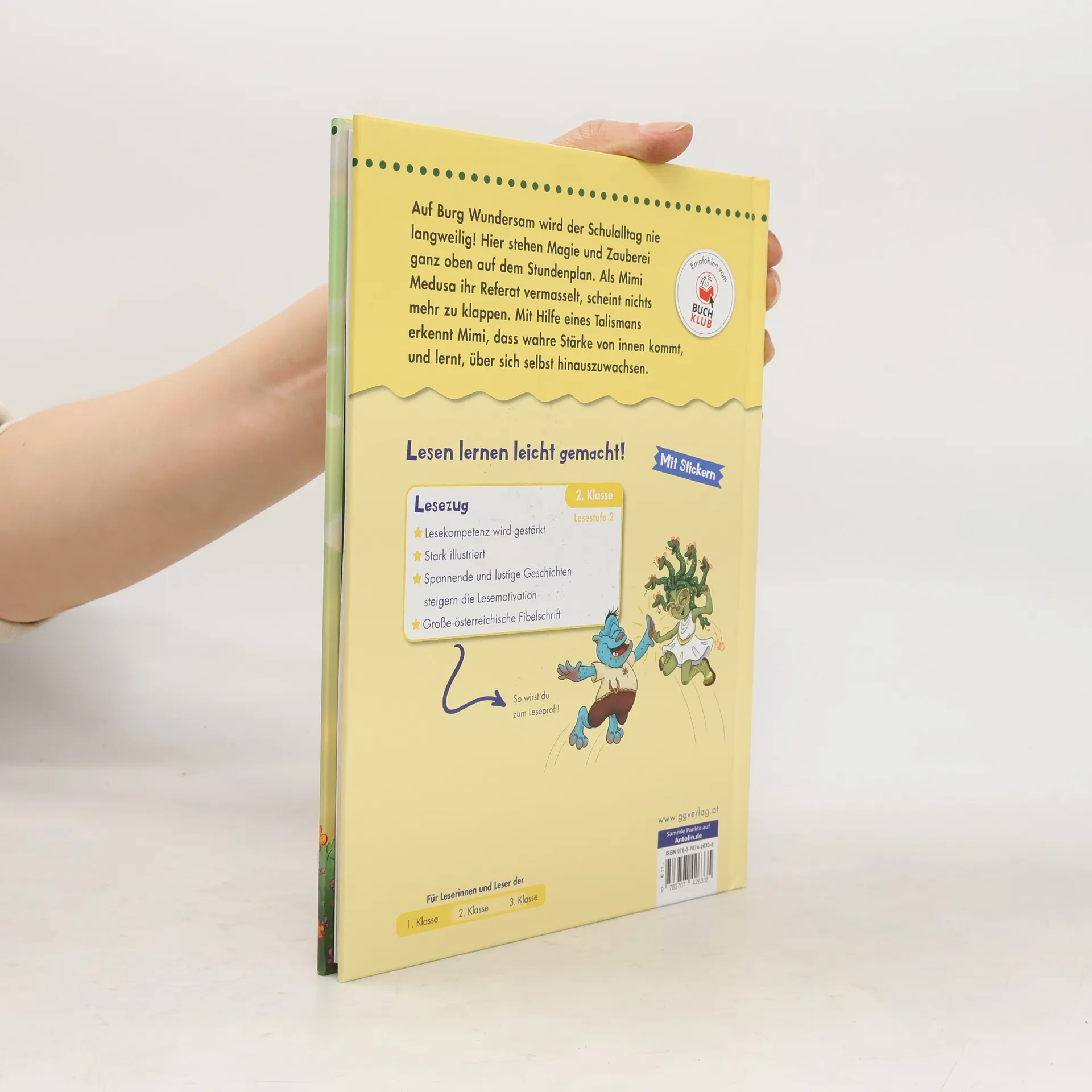 Auf Burg Wundersam wird der Schulalltag nie langweilig! Hier stehen Magie und Zauberei ganz oben auf dem Stundenplan. Als Mimi Medusa ihr Referat vermasselt, scheint nichts mehr zu klappen. Verzweifelt sucht sie nach ihrer verlorenen Magie. Mit Hilfe ihres besten Freundes und einem geheimnisvollen Talismans erkennt Mimi, dass wahre Stärke von innen kommt, und lernt, über sich selbst hinauszuwachsen. Dieses Buch ist speziell auf die Lesekompetenz junger Leser abgestimmt. Der G&G Lesezug unterstützen Kinder mit klar strukturierten Texten, verständlichem Wortschatz und altersgerechten Geschichten – mit Belohnungsstickern für motiviertes und selbstbewusstes Lesen!