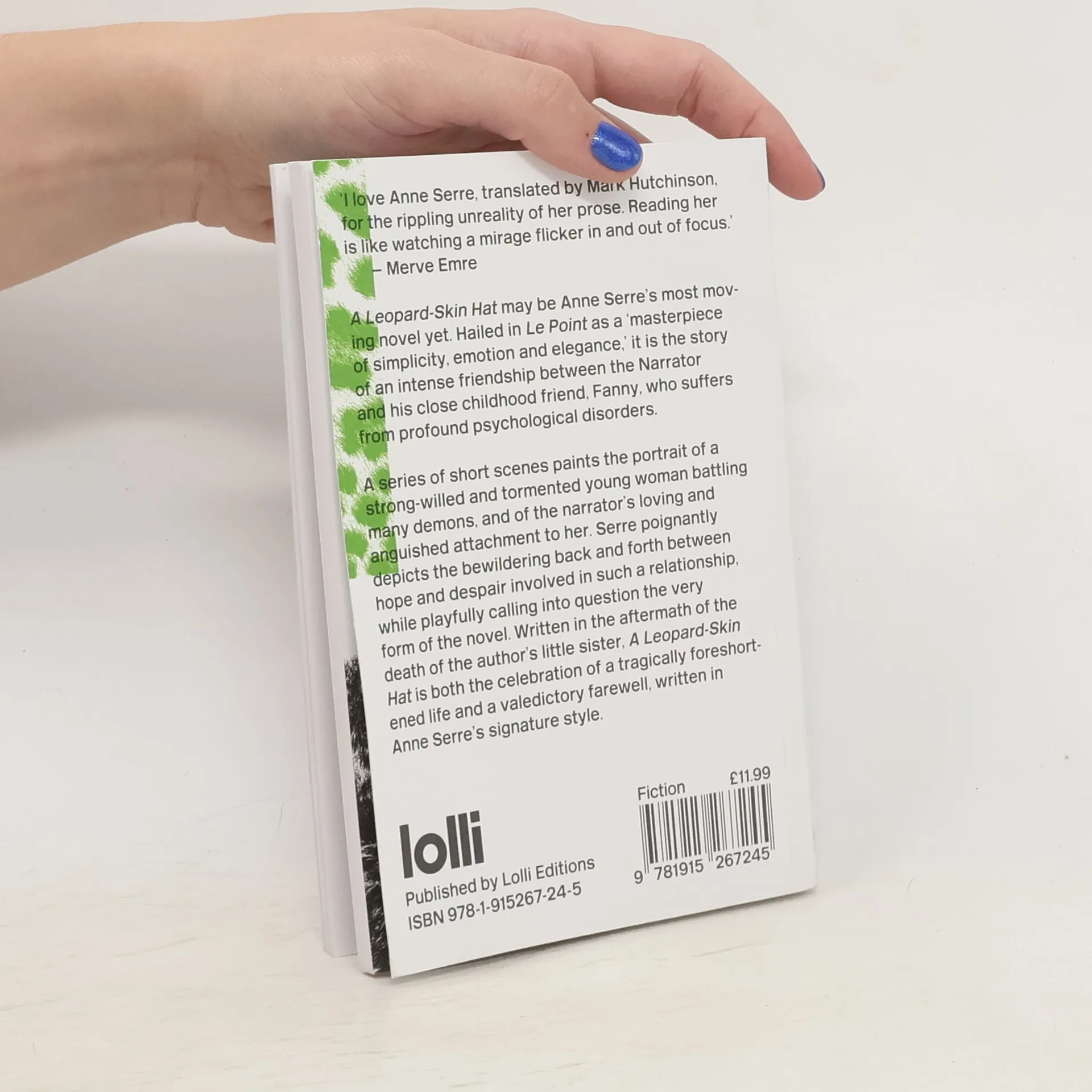 A Leopard-Skin Hat may be Anne Serre's most moving novel yet. Hailed in Le Point as a 'masterpiece of simplicity, emotion and elegance,' it is the story of an intense friendship between the Narrator and his close childhood friend, Fanny, who suffers from profound psychological disorders.