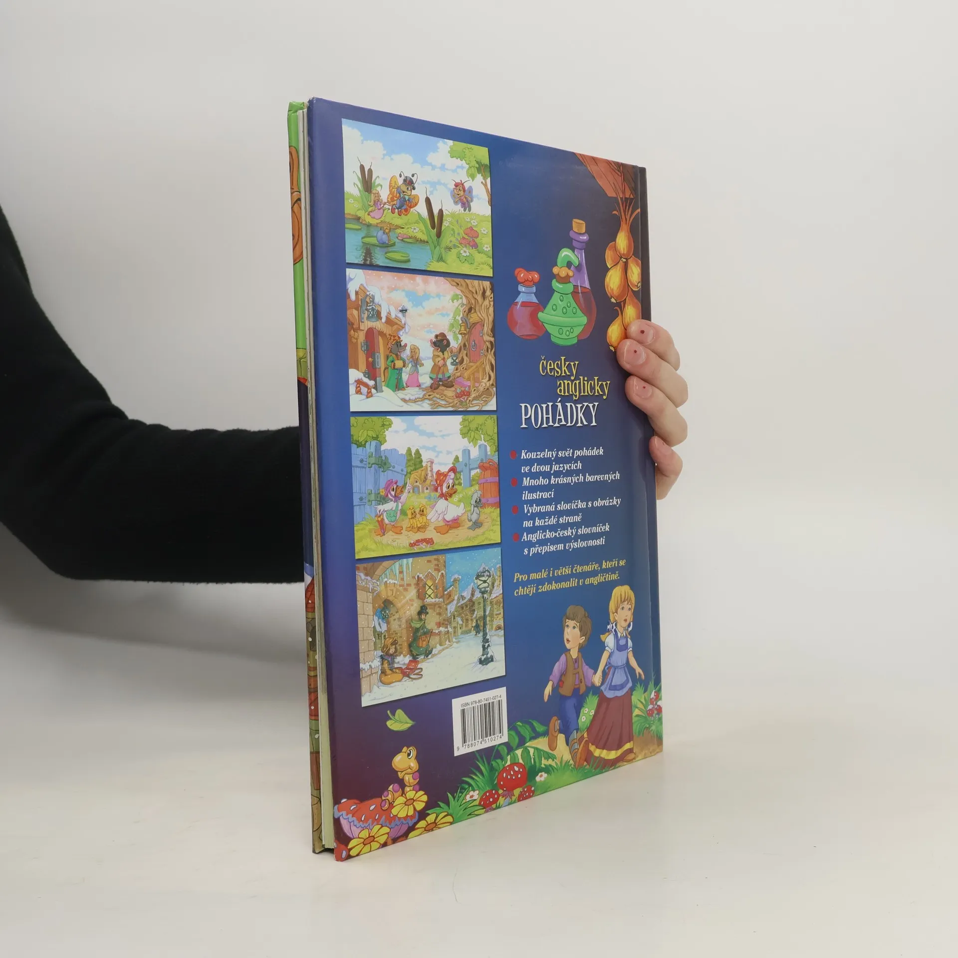 Kouzelný svět pohádek ve dvou jazycích pro malé i větší čtenáře, kteří se chtějí zdokonalit v angličtině. Pohádky jsou doprovázené krásnými ilustracemi a vybranými slovíčky s obrázky na každé straně. Obsahuje též anglicko-český slovníček s přepisem výslovnosti.