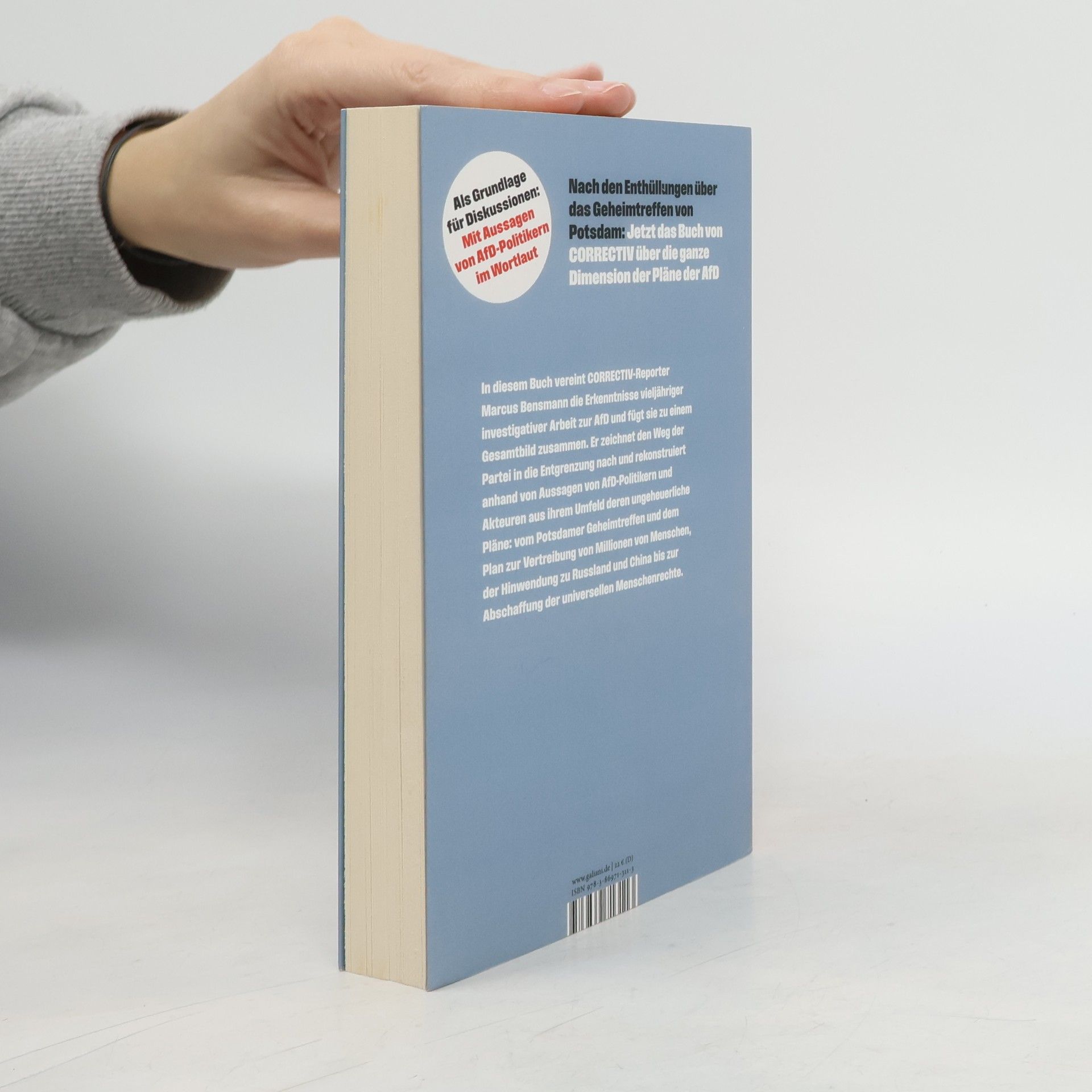 In diesem Buch vereint Marcus Bensmann die Erkenntnisse vieljähriger Recherchen des CORRECTIV-Netzwerks über die AfD. Anhand ihrer eigenen Aussagen rekonstruiert er die Pläne der Partei: vom Potsdamer Geheimtreffen bis zur geplanten Abschaffung von Grundwerten. Als Rechtsextremismus-Experte des Recherchenetzwerks CORRECTIV war Marcus Bensmann über Jahre hinweg auf Parteitagen, Kreisversammlungen und anderen Treffen der rechten Szene dabei, analysierte die Verlautbarungen und Programme rechter Netzwerke und die Bücher ihrer Protagonisten, verfolgte die Entwicklung der AfD von der professoralen Anti-Euro-Partei bis zur rechtsradikalen Übernahme durch den völkischen Flügel und die immense Radikalisierung an der Parteispitze. Aus den Ergebnissen vieljähriger CORRECTIV-Recherchen setzt Bensmann in diesem Buch zusammen, welche Pläne die Radikalen an der Parteispitze und ihre Einflüsterer verfolgen und was Deutschland blühen wird, sollten sie einst tatsächlich tun können, was sie wirklich wollen: Es geht um die Vertreibung von Millionen von Menschen, die Hinwendung zu Russland und China und die Abschaffung der universellen Menschenrechte.