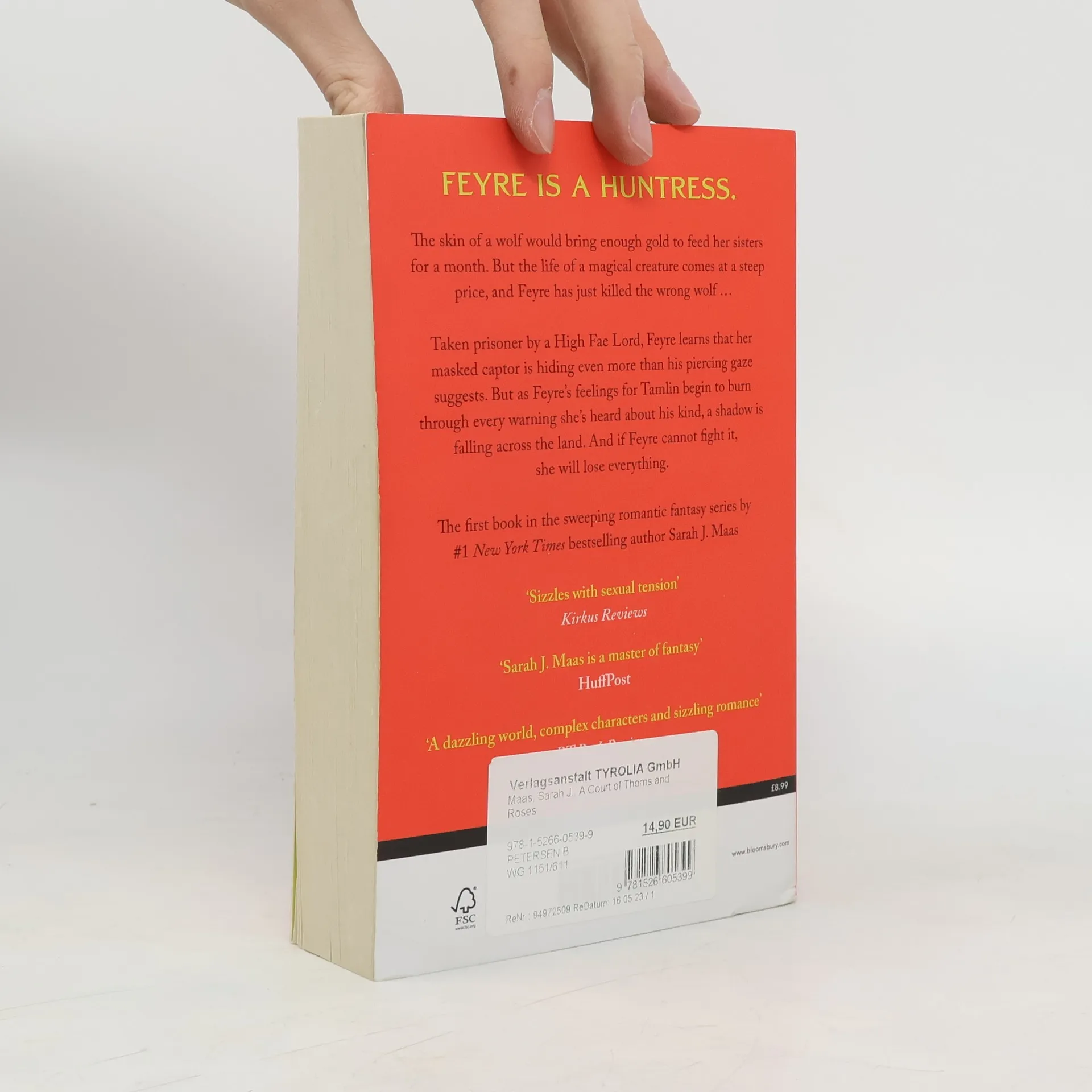 The first instalment of the GLOBAL PHENOMENON, romantic fantasy epic and TikTok sensation, ACOTAR. From multi-million and #1 Sunday Times bestselling author Sarah J. Maas. Maas has established herself as a fantasy fiction titan - Time Think Game of Thrones meets Buffy the Vampire Slayer with a drizzle of E.L. James - Telegraph Spiced with slick plotting and atmospheric world-building ... a page-turning delight - Guardian Sarah J. Maas does not disappoint . To be devoured with relish - Mail ****** Feyre is a huntress. And when she sees a deer in the forest being pursued by a wolf, she kills the predator and takes its prey to feed herself and her family. But the wolf was not what it seemed, and Feyre cannot predict the high price she will have to pay for its death... Dragged away from her family for the murder of a faerie, Feyre discovers that her captor, his face obscured by a jewelled mask, is hiding even more than his piercing green eyes suggest. As Feyre's feelings for Tamlin turn from hostility to passion, she learns that the faerie lands are a far more dangerous place than she realized. And Feyre must fight to break an ancient curse, or she will lose him forever. _________________________ Sarah J. Maas's books have sold millions of copies worldwide and have been translated into 38 languages. Discover the tantalising, sweeping romantic fantasy for yourself.
