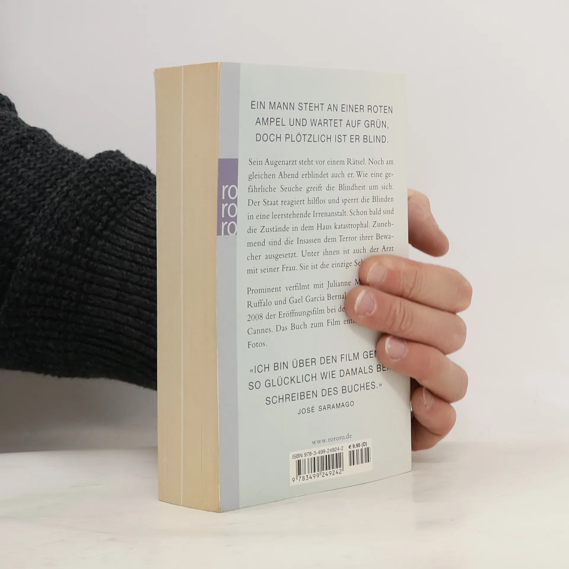 Ein Mann steht an einer roten Ampel und wartet auf Grün, doch plötzlich ist er blind. Sein Augenarzt steht vor einem Rätsel. Noch am gleichen Abend erblindet auch er. Wie eine gefährliche Seuche greift die Blindheit um sich. Der Staat reagiert hilflos und sperrt die Blinden in eine leerstehende Irrenanstalt. Schon bald sind die Zustände in dem Haus katastrophal. Zunehmend sind die Insassen dem Terror ihrer Bewacher ausgesetzt. Unter ihnen ist auch der Arzt mit seiner Frau. Sie ist die einzige Sehende … Prominent verfilmt mit Julianne Moore, Mark Ruffalo und Gael García Bernal war „Blindness“ 2008 der Eröffnungsfilm bei den Festspielen von Cannes. Das Buch zum Film enthält zahlreiche Fotos. „Ich bin über den Film genauso glücklich wie damals beim Schreiben des Buches.“ (José Saramago)