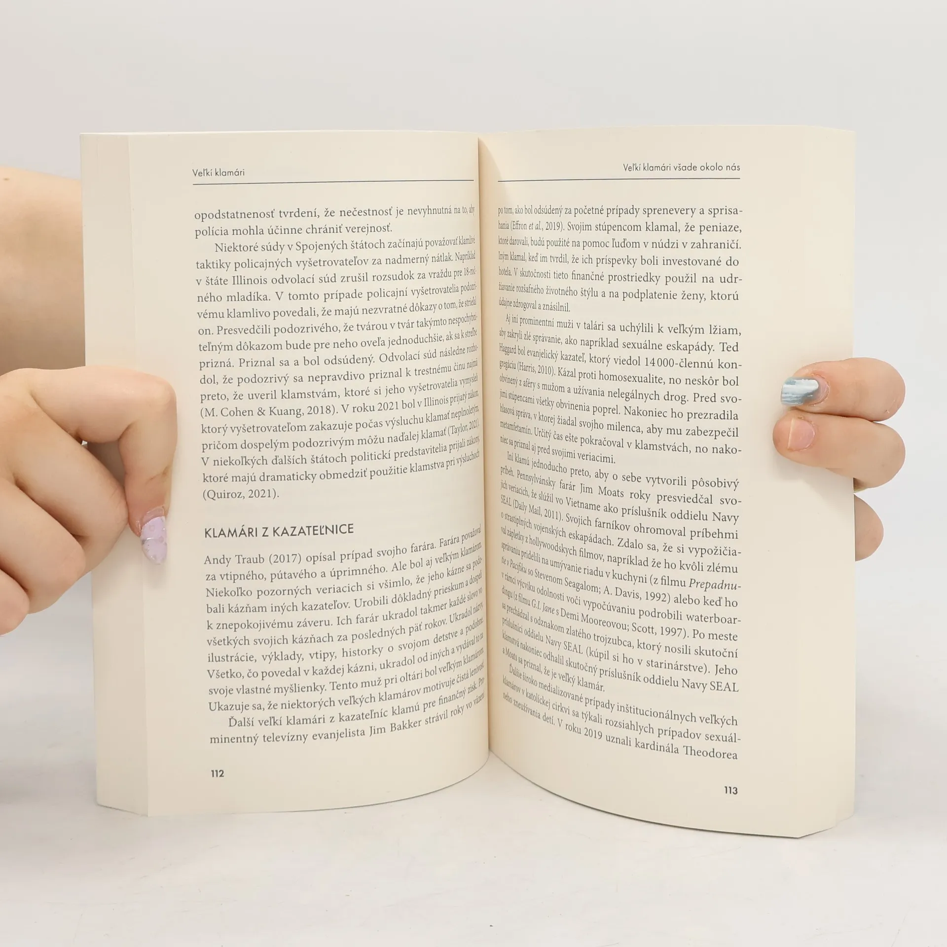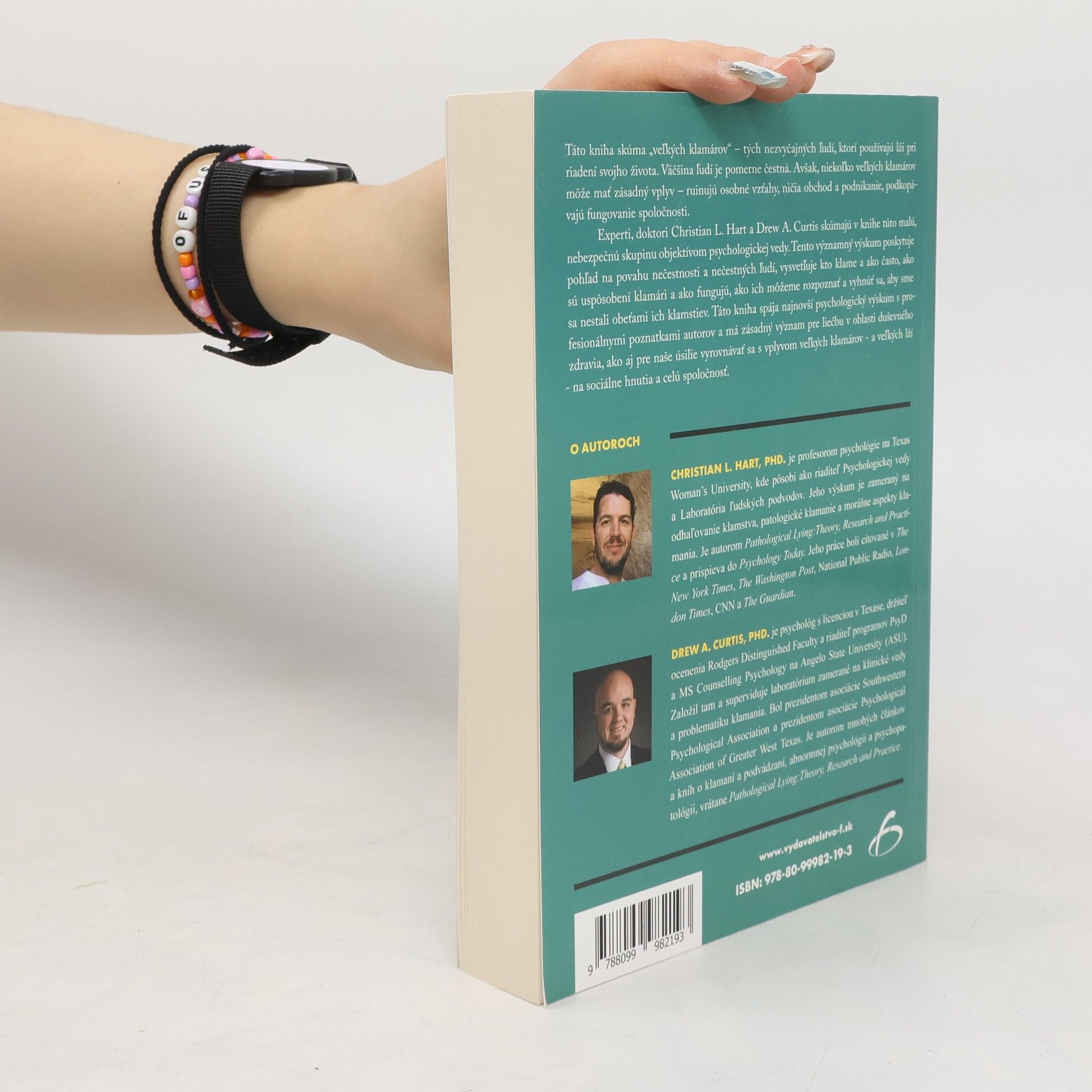 Táto kniha skúma „veľkých klamárov“ – tých nezvyčajných ľudí, ktorí používajú lži pri riadení svojho života. Väčšina ľudí je pomerne čestná. Avšak, niekoľko veľkých klamárov môže mať zásadný vplyv – ruinujú osobné vzťahy, ničia obchod a podnikanie, podkopávajú fungovanie spoločnosti. Experti, doktori Christian L. Hart a Drew A. Curtis skúmajú v knihe túto malú, nebezpečnú skupinu objektívom psychologickej vedy. Tento významný výskum poskytuje pohľad na povahu nečestnosti a nečestných ľudí, vysvetľuje kto klame a ako často, ako sú uspôsobení klamári a ako fungujú, ako ich môžeme rozpoznať a vyhnúť sa, aby sme sa nestali obeťami ich klamstiev. Táto kniha spája najnovší psychologický výskum s profesionálnymi poznatkami autorov a má zásadný význam pre liečbu v oblasti duševného zdravia, ako aj pre naše úsilie vyrovnávať sa s vplyvom veľkých klamárov - a veľkých lží - na sociálne hnutia a celú spoločnosť.