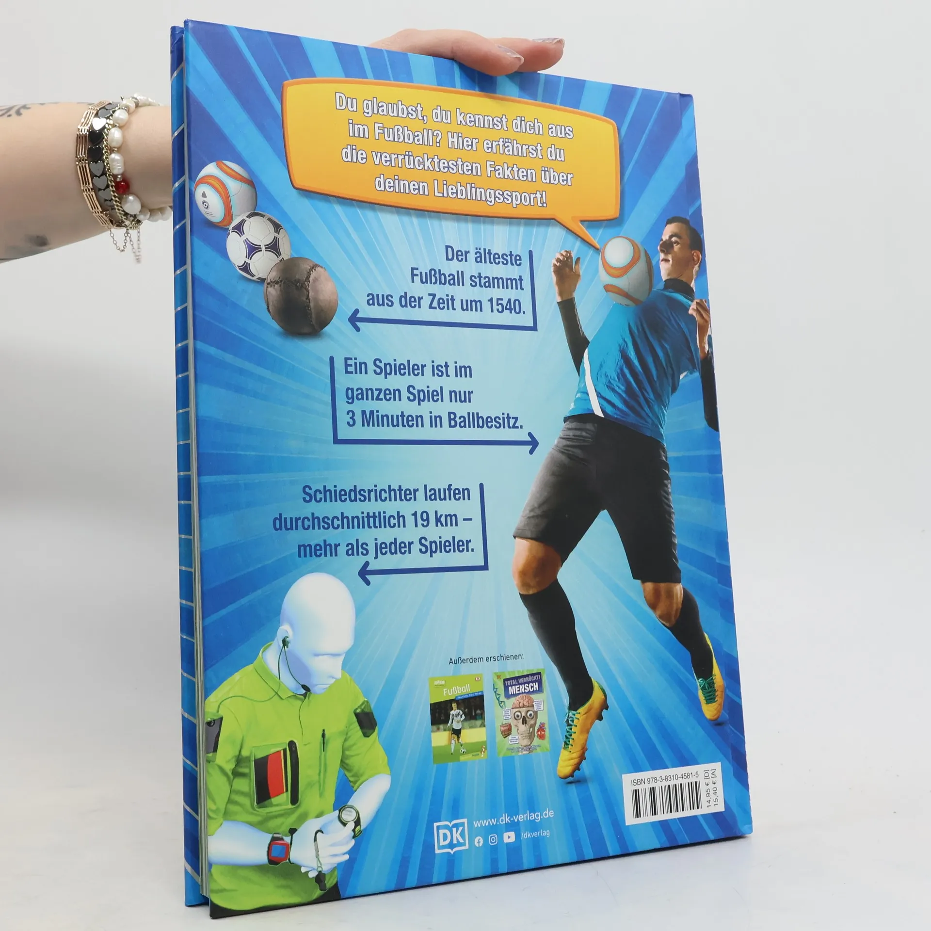"Das perfekte Begleitbuch zur Fußball WM - Anpfiff für ein spannendes Fußballspiel! In diesem ultimativen Fußballbuch erfahren begeisterte Kids alles über ihren Lieblingssport - von der Geschichte des Fußballs über Regeln und Rekorde bis zum Vereinsleben und den wichtigsten Turnieren. Welche Aufgaben hat ein Chef-Trainer? Und wie sehen moderne Fußballstadien von innen aus? Dazu gibt's sportliche Tipps und Taktik-Tricks, die sich nach der Lektüre gleich auf dem Fußballplatz ausprobieren lassen!Von der Geschichte des Fußballs bis zu verblüffenden Fakten - Kein Sport wird in Deutschland so gefeiert - und rund um den Fußball gibt es auch so einiges zu entdecken! Wann wurde zum ersten Mal Fußball gespielt? Auf welcher Spielposition sind die Spieler wofür verantworlich? Wie gelingt der perfekte Übersteiger und was sind die Vor- und Nachteile eines 4-4-2-Systems? Dieses umfassend aktualisierte Buch für fußballverrückte Kinder lässt keine Frage offen und ist mit seitenweise spannendem Wissen, Rekorden und Fakten das perfekte Geschenk für jeden Fußballfan." (www.buchhandel.de)