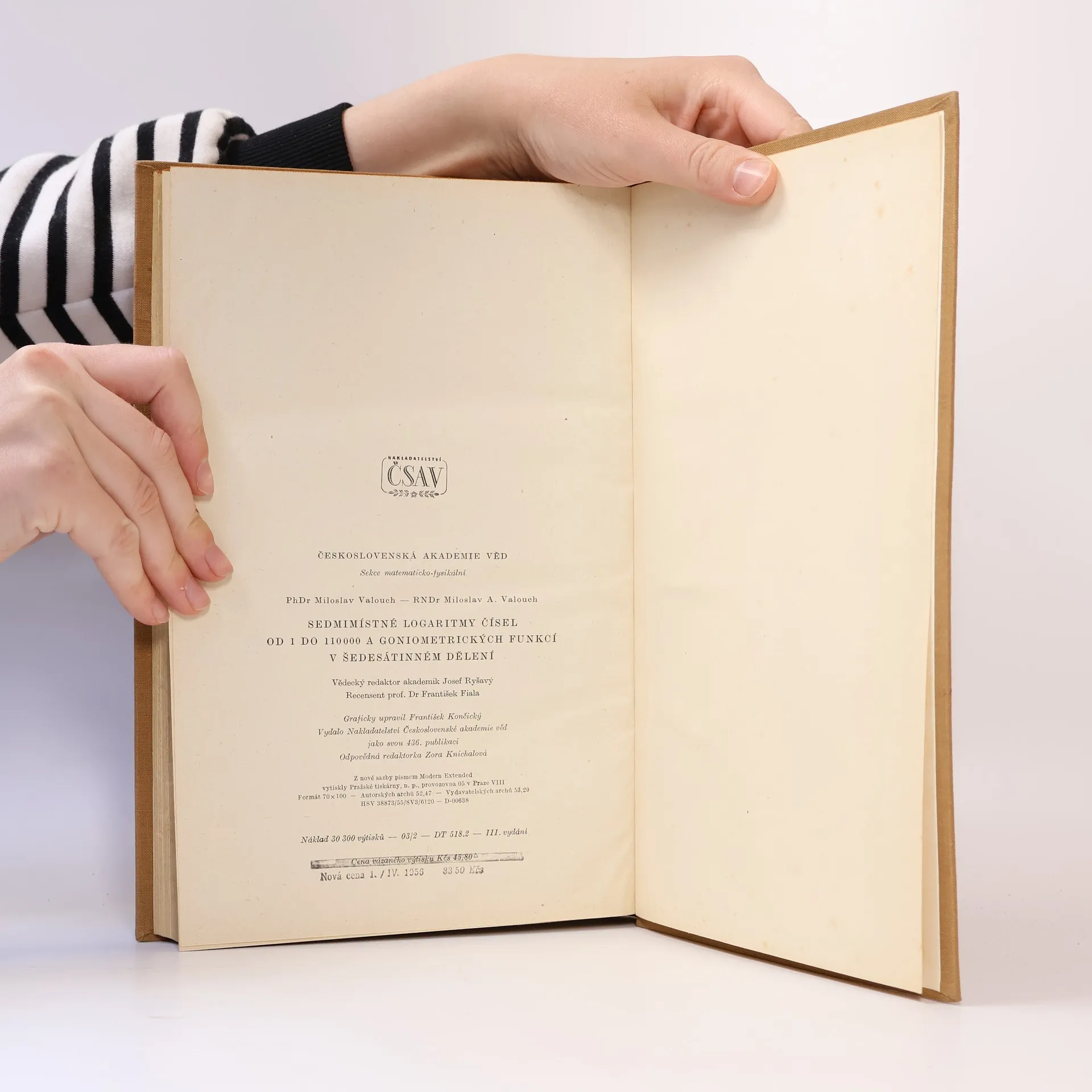 Sedmimístné logaritmy čísel od 1 do 110 000 a goniometrických funkcí v šedesátinném dělení, Miloslav Valouch