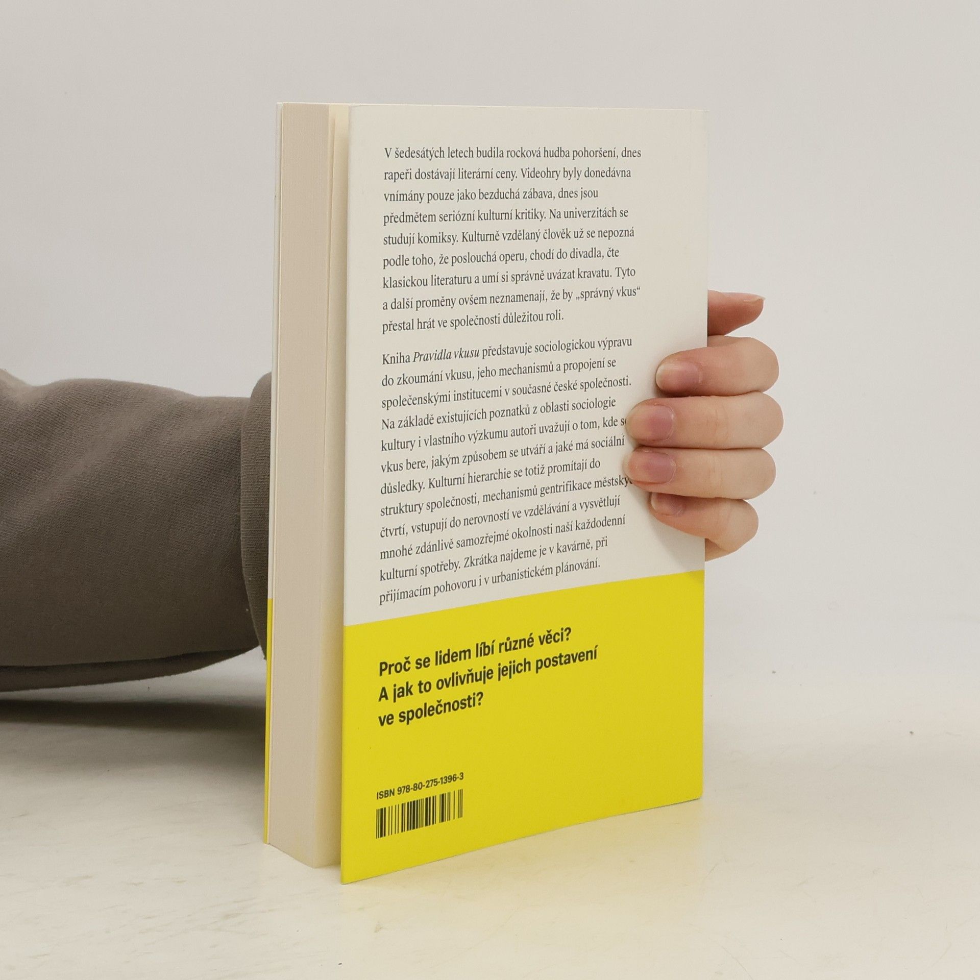 Proč se lidem líbí různé věci? A jak to ovlivňuje jejich postavení ve společnosti? V šedesátých letech budila rocková hudba pohoršení, dnes rapeři dostávají literární ceny. Videohry byly donedávna vnímány pouze jako bezduchá zábava, dnes jsou předmětem seriózní kulturní kritiky. Na univerzitách se studují komiksy. Tyto a další proměny ovšem neznamenají, že by ten správný vkus přestal být společenským platidlem a výrazné kulturní hierarchie minulosti se zcela rozplynuly. Kniha Pravidla vkusu představuje sociologickou výpravu do zkoumání vkusu, jeho mechanismů a propojenosti se společenskými institucemi v současné české společnosti. Na základě existujících poznatků z oblasti sociologie kultury i vlastního výzkumu řeší, kde se vkus bere, jakým způsobem se utváří a jaké má sociální důsledky. Kulturní hierarchie se totiž promítají do struktury společnosti, mechanismů gentrifikace městských čtvrtí, vstupují do nerovností ve vzdělávání a vysvětlují mnohé zdánlivě samozřejmé okolnosti naší každodenní kulturní spotřeby. Zkrátka najdeme je v kavárně, při přijímacím pohovoru i v urbanistickém plánování.