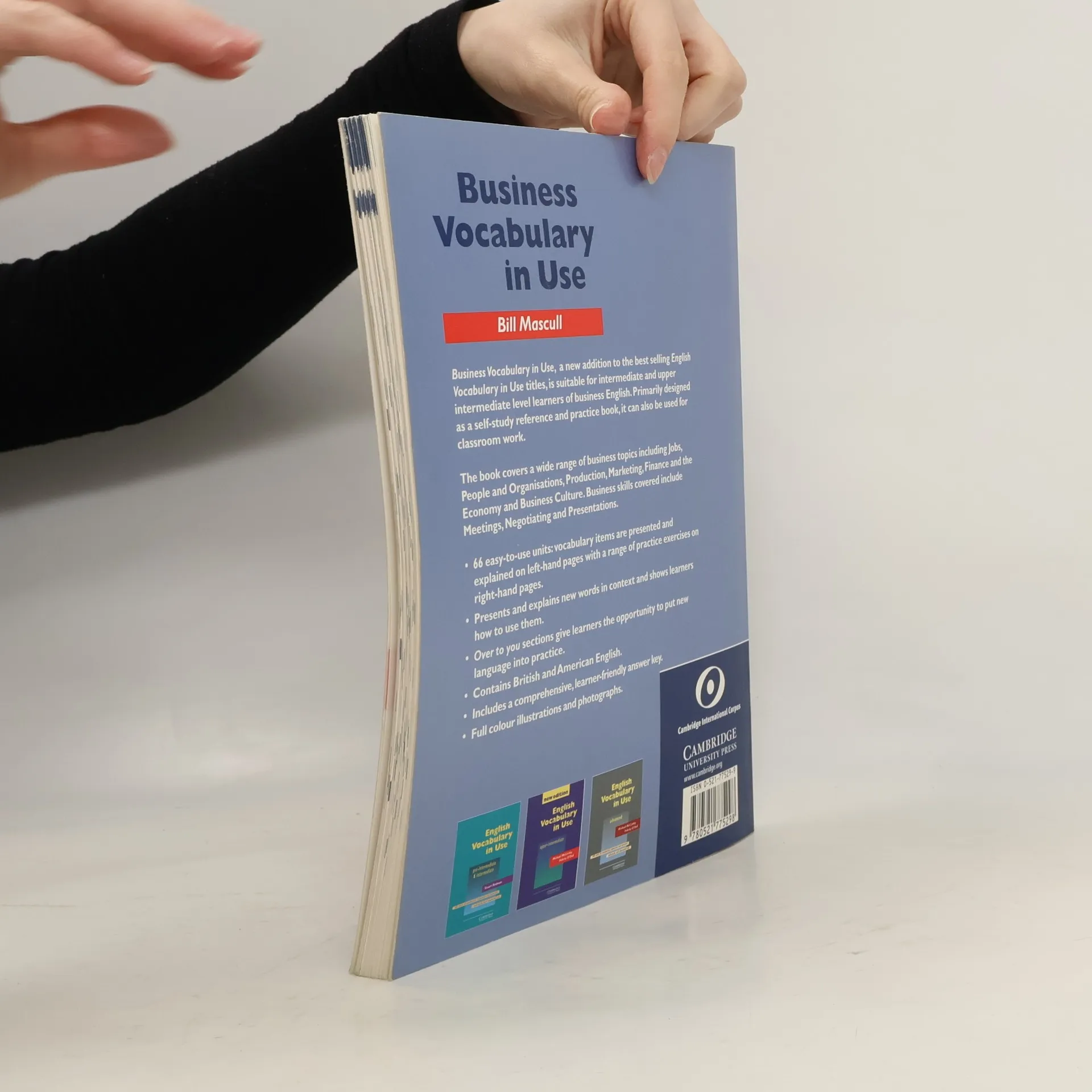 Business Vocabulary in Use includes 66 easy-to-use units, with vocabulary items presented and explained on the left-hand pages and a range of practice exercises on the right-hand pages. It also includes a comprehensive answer key. The book covers a huge range of business topics including jobs; people and organisations; production; marketing; finance and the economy, and business culture. Learners will develop essential business communication skills, focusing on the language used for meetings, negotiations and presentations.