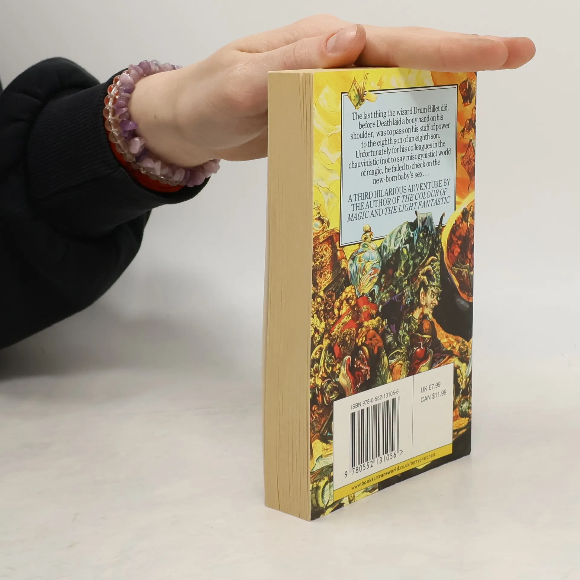 They say that a little knowledge is a dangerous thing, but it is not one half so bad as a lot of ignorance. The last thing the wizard Drum Billet did, before Death laid a bony hand on his shoulder, was to pass on his staff of power to the eighth son of an eighth son. Unfortunately for his colleagues in the chauvinistic (not to say misogynistic) world of magic, he failed to check that the baby in question was a son. Everybody knows that there's no such thing as a female wizard. But now it's gone and happened, there's nothing much anyone can do about it. Let the battle of the sexes begin...