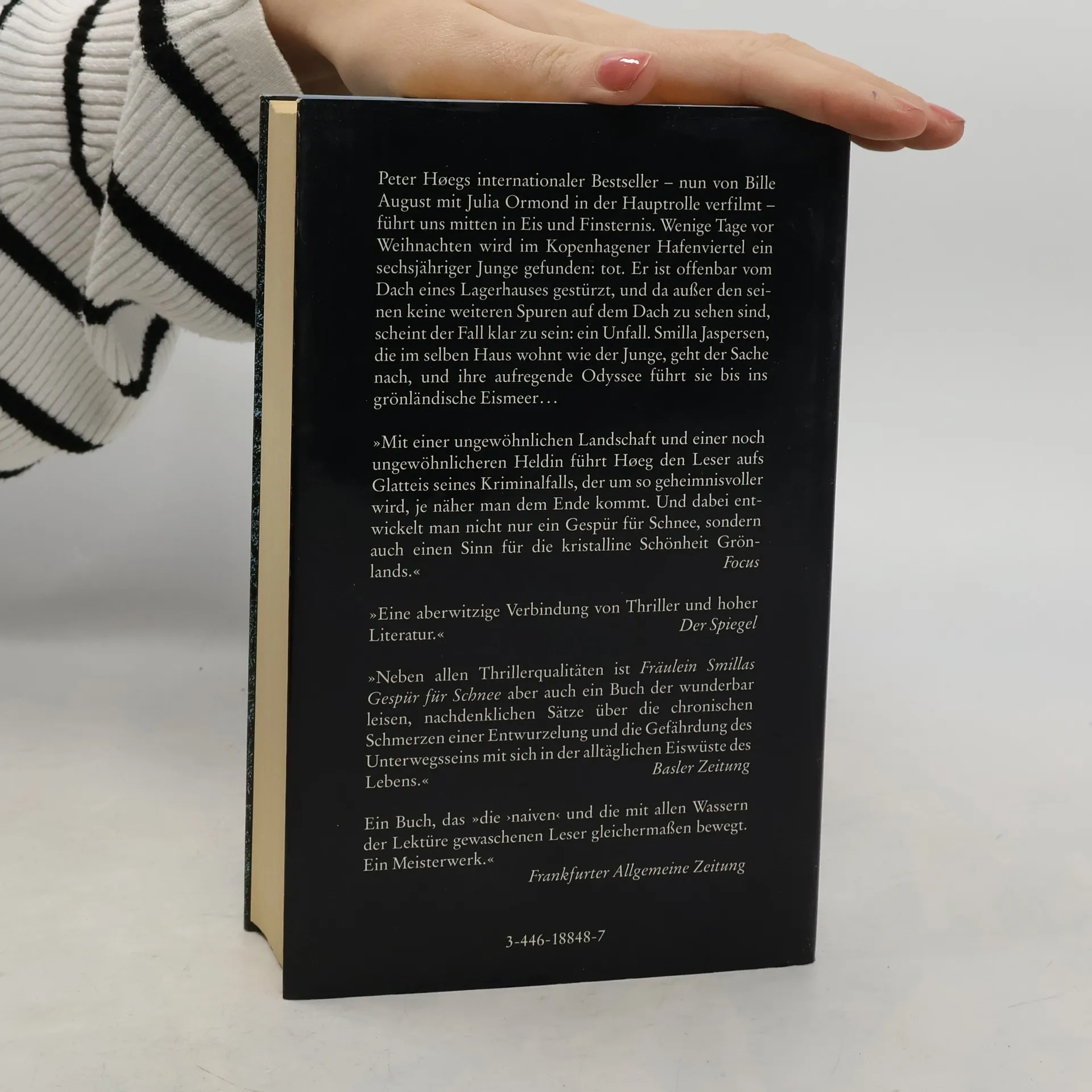 Im Kopenhagener Hafenviertel stürzt ein Junge vom Dach eines Lagerhauses. Todesursache laut Polizeibericht: ein Unfall. Smilla Jaspersen, die im selben Haus wohnt wie der Junge, sieht das anders und stellt ihre eigenen Nachforschungen an. Der internationale Erfolg dieses literarischen Thrillers hat neben der faszinierenden Geschichte vor allem mit seiner Heldin zu tun: der wunderbar ruppigen, unangepassten und zugleich zarten und verletzlichen Smilla.