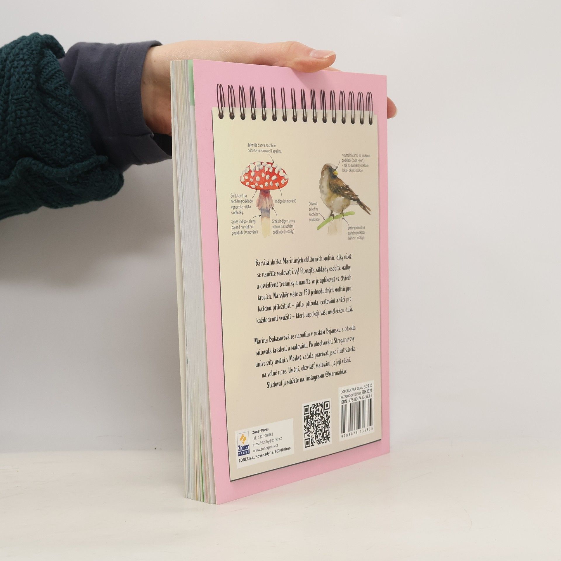 Chcete se naučit malovat akvarelovými barvami nebo chcete prostě jenom prohloubit svoje dovednosti? Zajímá vás, jak namíchat správný odstín a jak vybrat vhodný štětec? Rádi byste si užili trochu legrace při malování různorodých motivů? Pokud je vaše odpověď na kteroukoli z těchto otázek „ano“, pak je tato kniha právě pro vás! Akvarel ve čtyřech krocích (Four-Step Watercolour) od autorky Mariny Bakasovové je plný užitečných tipů a návodů, jak postupovat při tvorbě vlastních obrázků a ilustrací. Autorka vám hned na začátku představí jednotlivé pomůcky, které jsou pro malování akvarelem potřeba, a ukáže vám, jak se od sebe liší různé techniky. Jestli tápete, jakým motivem začít, můžete nahlédnout do roztomilého seznamu! Na výběr máte hned ze 150 jídel, tvarů, zvířat a věcí. Je libo namalovat si ve čtyřech krocích citrón, zmrzlinu nebo papouška? U každého motivu vás čeká doporučení, jestli začít na suchém, anebo mokrém podkladu, spolu se seznamem vhodných barev, případně tipů na jejich míchání. Spolu s tím v knize najdete doporučení ohledně obtížnosti. Tak na co čekáte? Popusťte uzdu své tvořivosti a hurá do toho! O autorovi/autorce Marina Bakasovová se narodila v ruském Brjansku a odmala milovala kreslení a malování. Po absolvování Moskevské státní Stroganovovy umělecké univerzity začala pracovat jako ilustrátorka na volné noze. Umění, obzvlášť malování, je její vášní. Sledovat ji můžete na Instagramu @marinabksv.