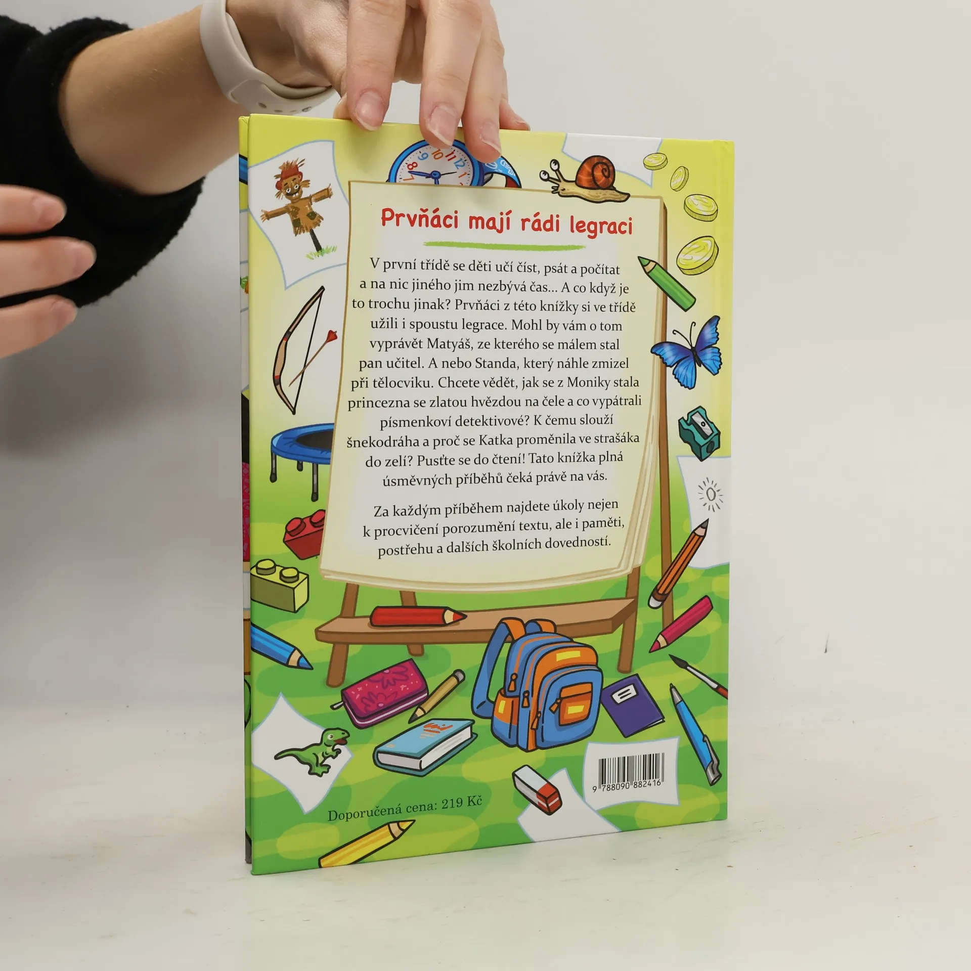 V první třídě se děti učí číst, psát a počítat a na nic jiného jim nezbývá čas... A co když je to trochu jinak? Prvňáci z této knížky si ve třídě užili i spoustu legrace. Mohl by vám o tom vyprávět Matyáš, ze kterého se málem stal pan učitel. A nebo Standa, který náhle zmizel při tělocviku. Chcete vědět, jak se z Moniky stala princezna se zlatou hvězdou na čele a co vypátrali písmenkoví detektivové? K čemu slouží šnekodráha a proč se Katka proměnila ve strašáka do zelí? Pusťte se do čtení! Tato knížka plná úsměvných příběhů čeká právě na vás. Za každým příběhem najdete úkoly nejen k procvičení porozumění textu, ale i paměti, postřehu a dalších školních dovedností.