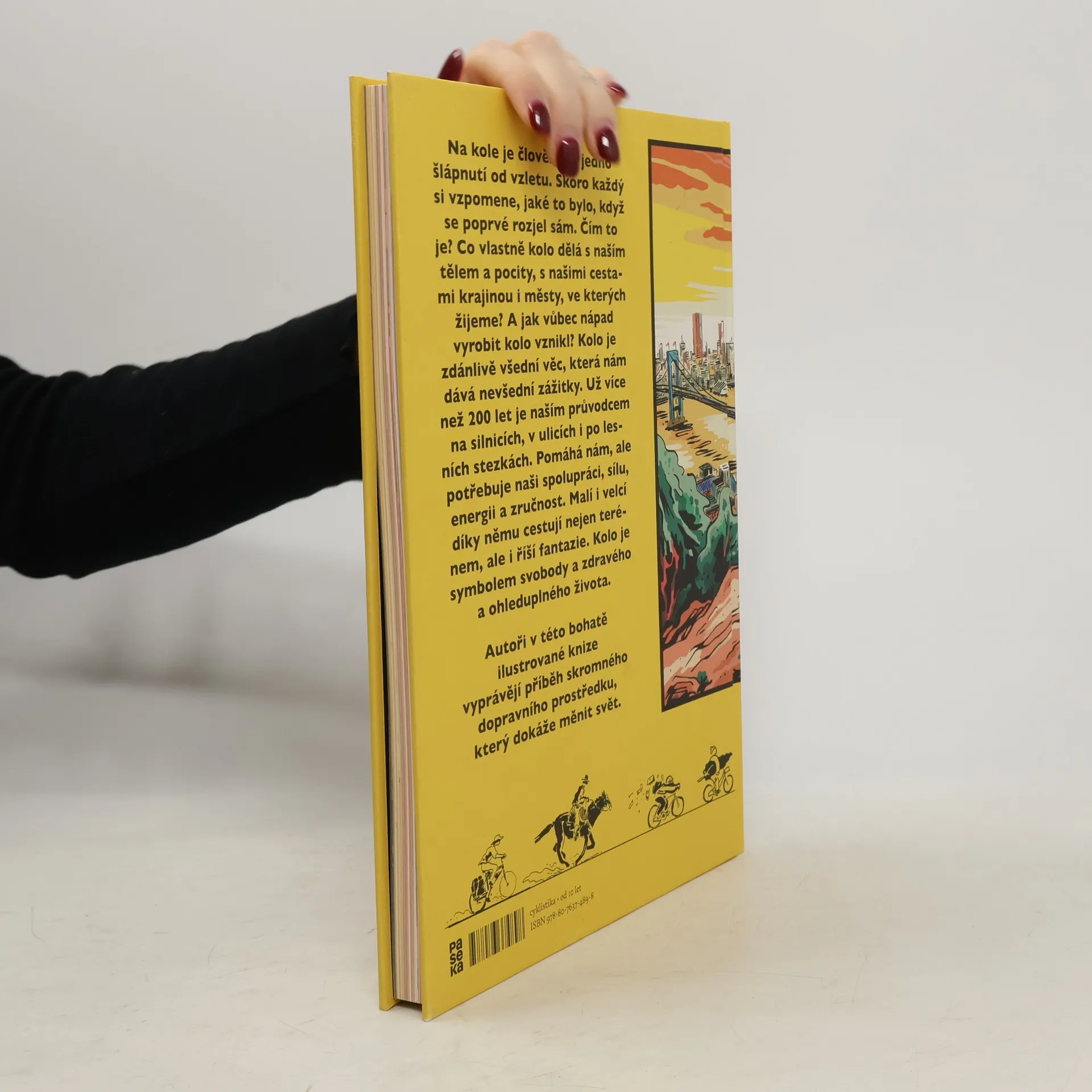 Na kole je člověk jen jedno šlápnutí od vzletu. Skoro každý si vzpomene, jaké to bylo, když se poprvé rozjel sám. Čím to je? Co vlastně kolo dělá s naším tělem a pocity, s našimi cestami krajinou i městy, ve kterých žijeme? A jak vůbec nápad vyrobit kolo vznikl? Kolo je zdánlivě všední věc, která nám dává nevšední zážitky. Už více než 200 let je naším průvodcem na silnicích, v ulicích i po lesních stezkách. Pomáhá nám, ale potřebuje naši spolupráci, sílu, energii a zručnost. Malí i velcí díky němu cestují nejen terénem, ale i říší fantazie. Kolo je symbolem svobody a zdravého a ohleduplného života. Autoři v této bohatě ilustrované knize vyprávějí příběh skromného dopravního prostředku, který dokáže měnit svět.