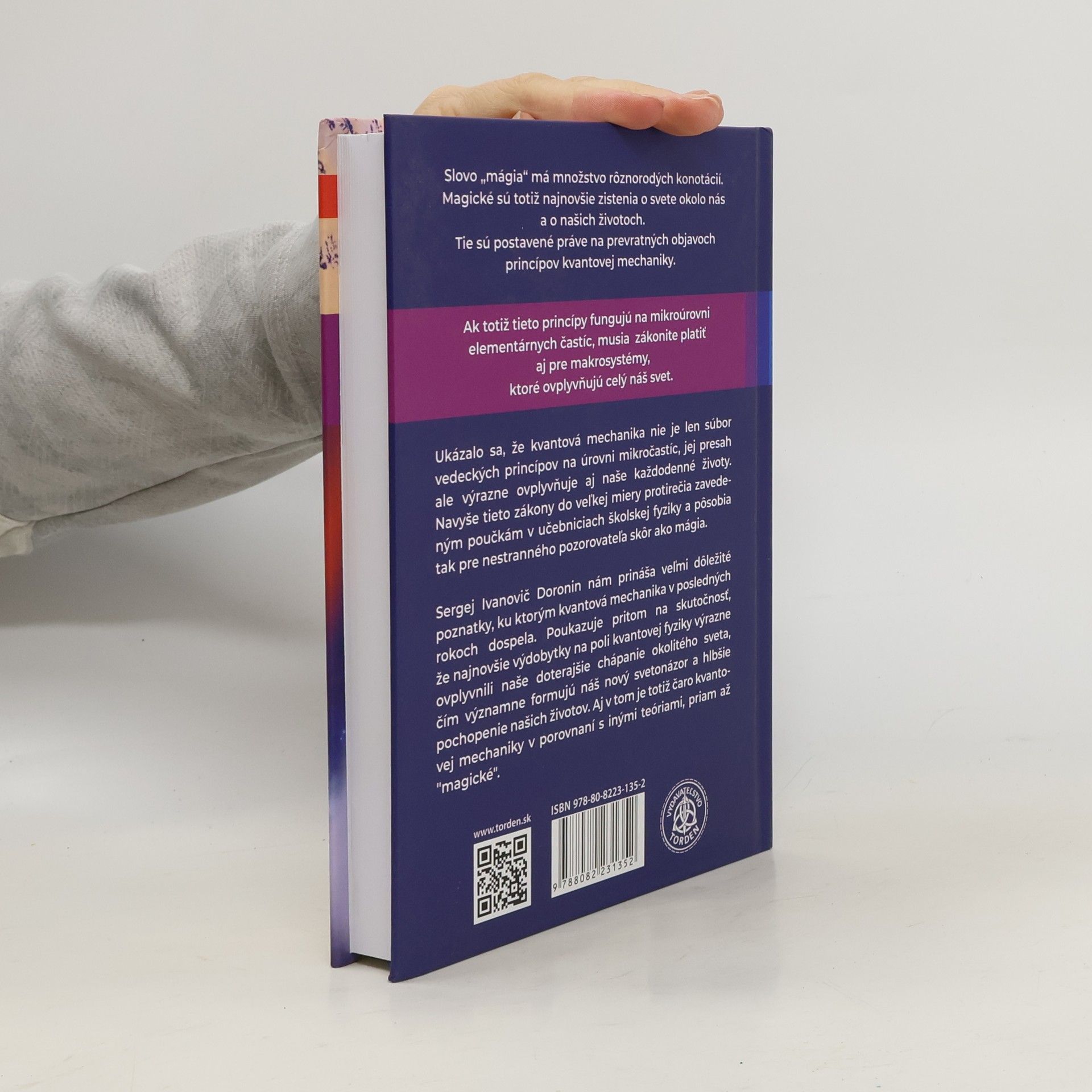 Slovo „mágia“ má v súvislosti s touto knihou množstvo rôznorodých konotácií. Magické sú na tom totiž najnovšie zistenia o svete okolo nás a o našich životoch. Tie sú postavené na prevratných objavoch princípov kvantovej mechaniky. Popredný ruský vedecký výskumník Sergej Ivanovič DORONIN prichádza so zaujímavou teóriou, ktorú sa zároveň pokúša aj dokázať. Ak totiž princípy kvantovej mechaniky fungujú na mikroúrovni elementárnych častíc, musia tie isté princípy zákonite platiť aj pre makrosystémy, ktoré ovplyvňujú celý náš svet. Ukázalo sa totiž, že kvantová mechanika nie je len súbor vedeckých princípov na úrovni mikročastíc, ale jej presah výrazne ovplyvňuje aj naše každodenné životy. Navyše tieto zákony do veľkej miery protirečia zavedeným poučkám v učebniciach školskej fyziky a pôsobia tak pre nestranného pozorovateľa skôr ako mágia. Sergej Ivanovič Doronin nám svojou knihou “Kvantová mágia” prináša veľmi dôležité poznatky, ku ktorým kvantová mechanika v posledných rokoch dospela. Poukazuje pritom na skutočnosť, že najnovšie výdobytky na poli kvantovej fyziky výrazne ovplyvnili naše doterajšie chápanie okolitého sveta, čím významne formujú náš nový svetonázor a hlbšie pochopenie našich životov. Aj v tom je totiž čaro kvantovej mechaniky v porovnaní s inými teóriami, priam až “magické“.