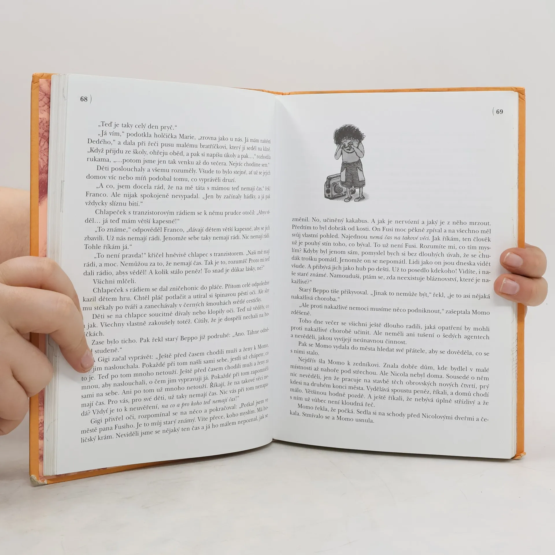 Podivuhodné vyprávění z pera autora světoznámého Nekonečného příběhu. Nevšední vyprávění o děvčátku Momo, které přemohlo zloděje času. Díky její veliké odvaze tak lidé opět nabyli ztracenou schopnost čas vnímat. Mimořádná kniha, plná poetiky a napětí, je psaná strhujícím jazykem a čtenáře zaujme už od prvních řádků. Stejně jako i u dalších knih Michaela Endeho (Nekonečný příběh) vstoupíme do světa podivuhodné fantazie.